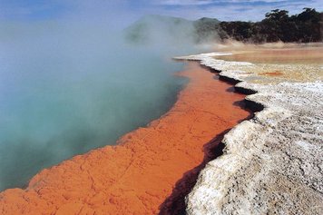 Heute geht es ins Landesinnere, durch den Te Urewera Nationalpark. Die kurvige Strasse führt am, von Regenwäldern umgebenen, Waikaremoana See vorbei nach Rotorua, das Zentrum der Maorikultur. 2 Nächte im Copthorne Hotel Rotorua. Ca. 320 km