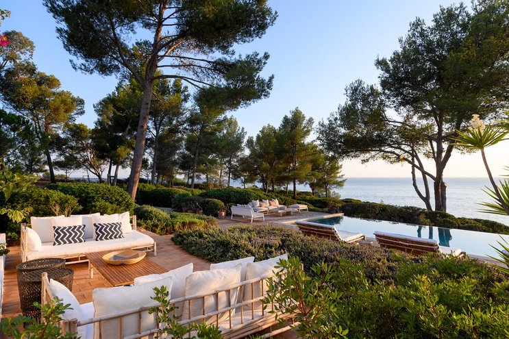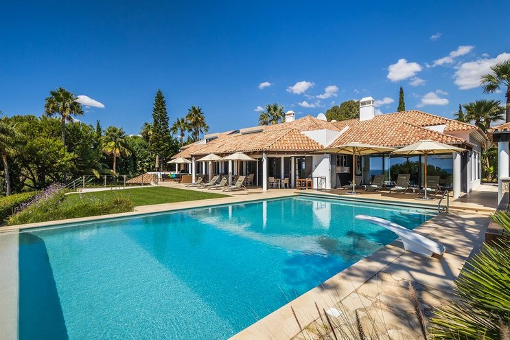 In bester Lage mit Blick auf das Meer bietet diese außergewöhnliche Luxusvilla ruhige Gärten, einen privaten Tennisplatz, einen Kochservice inklusive und einen Weg über das eigene Grundstück zum Strand.