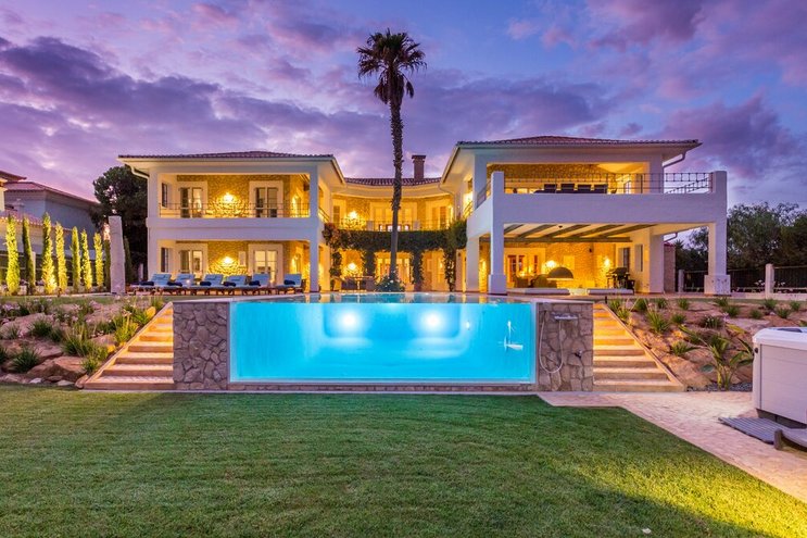 Eine außergewöhnliche Luxusvilla in Portugal, dieses stilvolle Haus ergänzt feine Einrichtungen mit schönen Rasengärten in einer beneidenswerten Lage in Strandnähe und mit Blick auf das Meer.