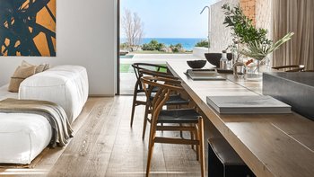 Die Villa verfügt über fünf stilvolle Schlafzimmer, die auf Komfort und Privatsphäre ausgelegt sind. Der Master-Suite verfügt über ein Kingsize-Bett, ein eigenes Bad und ein eigenes Mezzanine-Büro sowie eine große private Terrasse. Zwei weitere Schlafzimmer verfügen über Kingsize-Betten und ein eigenes Bad, während sich die vier und fünf Schlafzimmer ein gemeinsames Bad teilen und mit zwei Einzelbetten und Etagenbetten ausgestattet sind, ideal für Familien oder Gruppen. Jedes Schlafzimmer bietet direkten Zugang zu Patios oder Terrassen, was das nahtlose Wohnerlebnis im Innen- und Außenbereich verbessert.