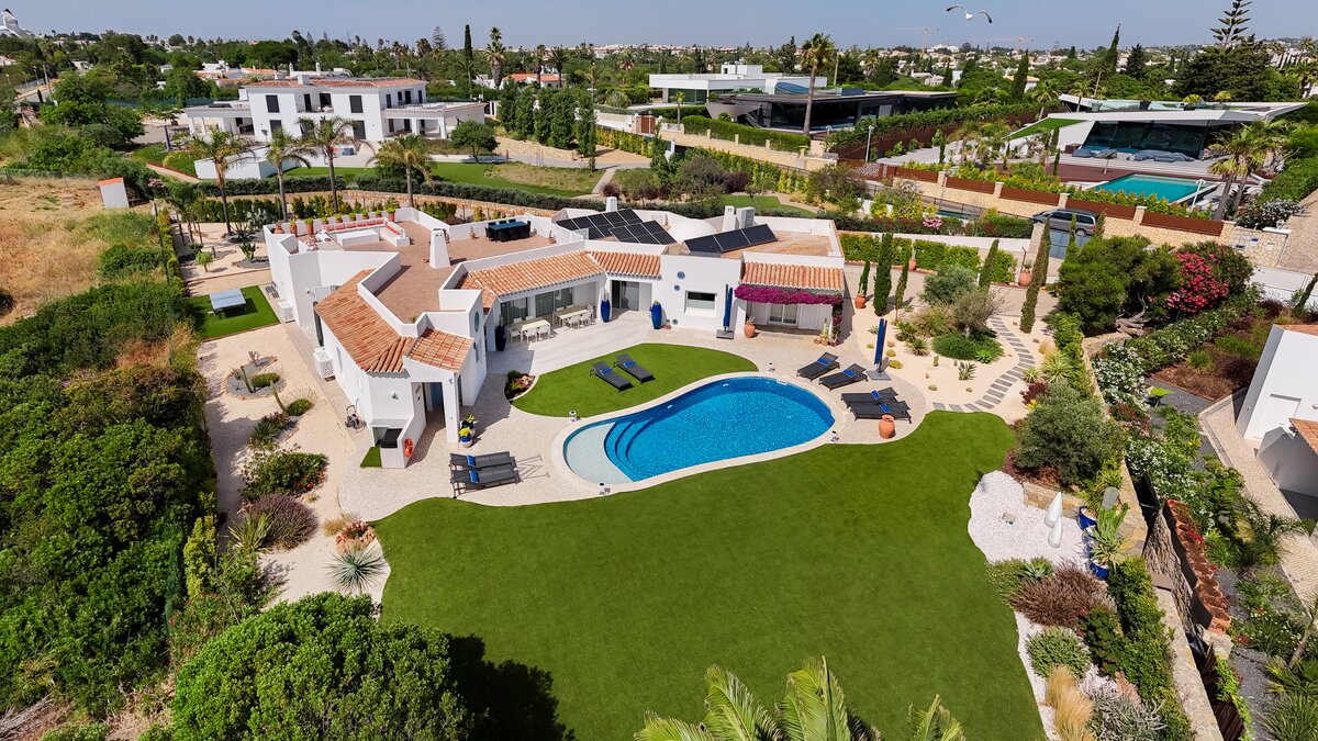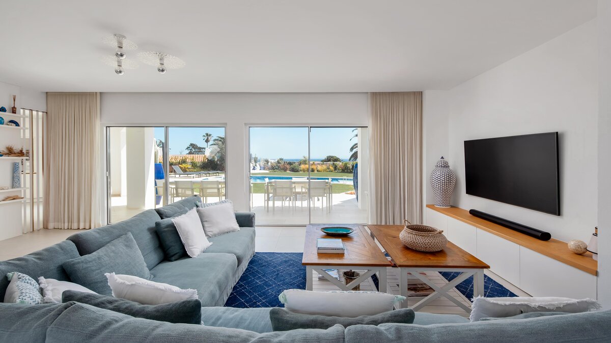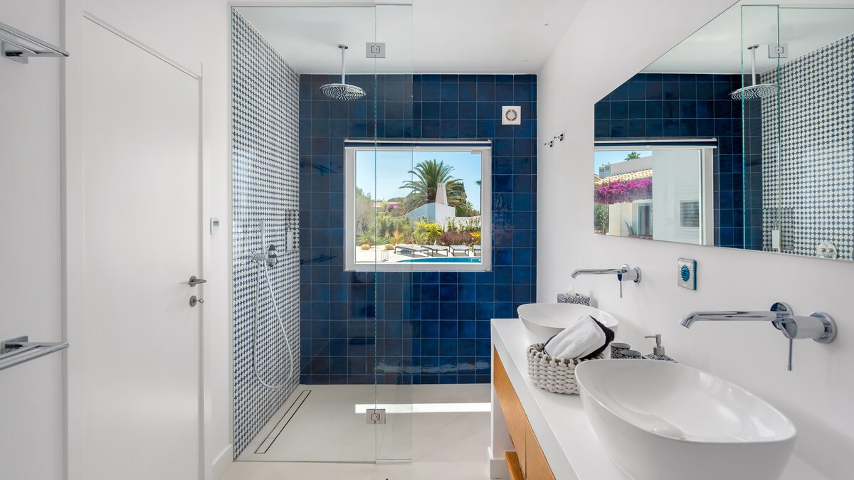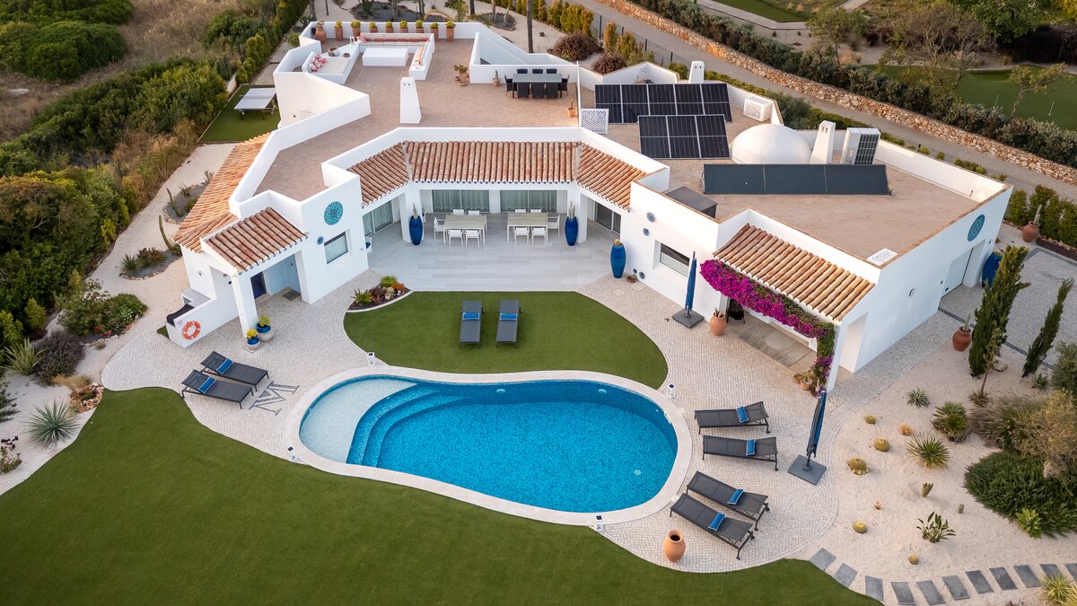 Treten Sie ein und entdecken Sie die geräumigen, lichtdurchfluteten Innenräume, in denen natürliche Materialien und beruhigende Farbtöne die Schönheit der umliegenden Landschaft hervorrufen. Deren Doppelinselküche der Villa und der angrenzende Essbereich fügen sich nahtlos in eine einladende Hauptlounge und ein intimeres Wohnzimmer ein, das sowohl Gemeinschafts- und auch Privaträume bietet. Vier Schlafzimmer mit eigenem Bad, die jeweils nach den Stränden der Region benannt sind (Praia Luz, Paraïso, Falesia, Rocha), sind individuell in beruhigenden Blau-, Türkis- und Ockertönen eingerichtet und bieten entweder Meer- oder Poolblick oder eine abgeschiedene Terrasse. Sorgfältig ausgewählte Möbel, hochwertige Bettwäsche und historische portugiesische Azulejos verleihen dem gesamten Gebäude einen Hauch von Tradition und Komfort und sorgen für ein gemütliches und dennoch anspruchsvolles Ambiente.