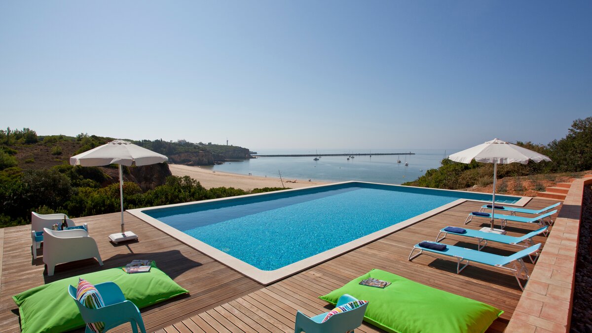 Das Beach Cottage ist eine fröhliche kleine Villa mit weißem Dekor und sommerlichen Farben in Stoffen und Kunstwerken. Es liegt nur 200 m von einem breiten Sandstrand entfernt, der über einen leicht abfallenden Weg durch das Gelände seines historischen Privatanwesens erreicht wird. Dieser besondere Ort genießt ein ruhiges Gefühl der Abgeschiedenheit, obwohl Geschäfte und Restaurants im alten Ferragudo-Dorf zu Fuß 1 km entfernt sind. Golf, Tennis und Wassersport sind alle innerhalb von 4 km mit dem Auto zu erreichen. Die drei Schlafzimmer der Villa wurden renoviert, um dem charaktervollen Interieur eine moderne Note zu verleihen. Sie sind charmant einfach eingerichtet, mit Klimaanlage ausgestattet und mit stilvollen modernen Bade- und Duschräumen ausgestattet. Zwei- Zweibettzimmer befinden sich im Erdgeschoss auf zwei Ebenen und ein Doppelschlafzimmer befindet sich im oberen Stockwerk. Deren fröhliche Wohnzimmer führt hinauf zum Küchenbereich und öffnet sich auf eine schöne schattige Terrasse, auf der Sie Mahlzeiten im Freien genießen können, mit Blick auf das Meer und die Sand- und Sandflächen, einem tragbaren Grill und Sitzgelegenheiten mit bunten Kissen. Und Treppen führen und von hier hinunter zu einem großzügigen Swimmingpool, der von einer Holzterrasse mit vielen Stühlen und Liegen umgeben istund