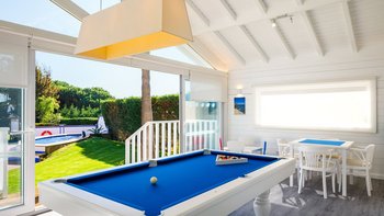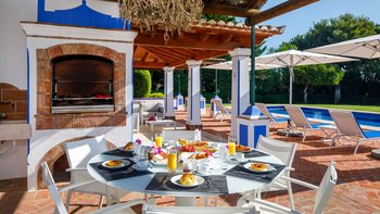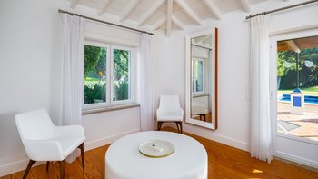 Im Außenbereich befindet sich eine große Terrasse mit einem Kinderbecken und einem 10 m langen Pool für den Rest der Familie, gepaart mit Liegestühlen und Sonnenschirmen mit Blick auf die üppigen Rasenflächen. Neben dem Haus befindet sich ein überdachter Teil der Terrasse mit einem Essbereich im Freien mit eingebautem Grill und weichen Sitzgelegenheiten zum Entspannen im Schatten. Des Spielzimmers ist eine wunderbare Ergänzung zu diesem Anwesen, das am Pool mit Billardtisch, Tischfußball und weiteren Sitzgelegenheiten für Kinder und Erwachsene gleichermaßen gefunden werden kann. Calendula ist ideal für Familien und Gruppen von bis zu sechs Personen, während größere Gruppen auch im benachbarten Miradouro gebucht werden können.