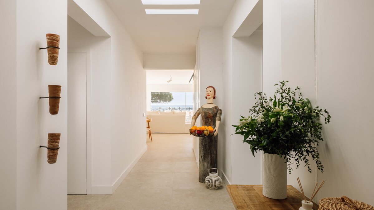 Im Obergeschoss im ersten Stock gibt es eine charmante Dachterrasse mit Sitzgelegenheiten im Freien und Panoramablick auf das Meer, ein herrlicher Ort, um den Sonnenuntergang zu beobachten.