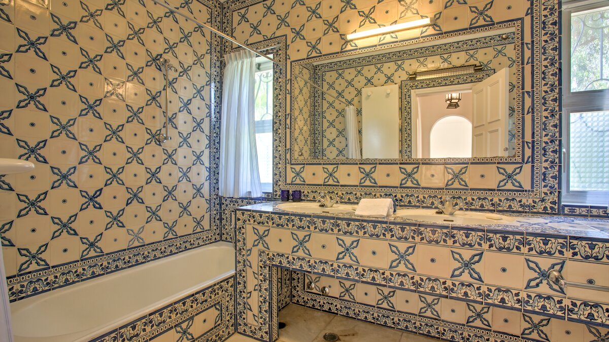 Diese schöne Villa im Herzen der Algarve ist in jeder Hinsicht ein geräumiges und anmutiges Haus und legt gleichermaßen Wert auf das Leben im Innen- und Außenbereich. Nur ein paar Schritte über der weitläufigen Rasenfläche erhebt sich eine große Terrasse entlang des Gebäudes, die teilweise schattig bedeckt ist und wunderschön zum Essen und Polstersessel im Freien eingerichtet ist. Dessen elegante Wohnzimmer und das Esszimmer sind sehr geräumig mit schönen Azulejos-Fliesen, die auch in den Badezimmern verwendet werden. Denen fünf luftigen, hübschen Schlafzimmer sind sehr komfortabel und geräumig und wurden mit neuen Matratzen und Unterbetten ausgestattet.
