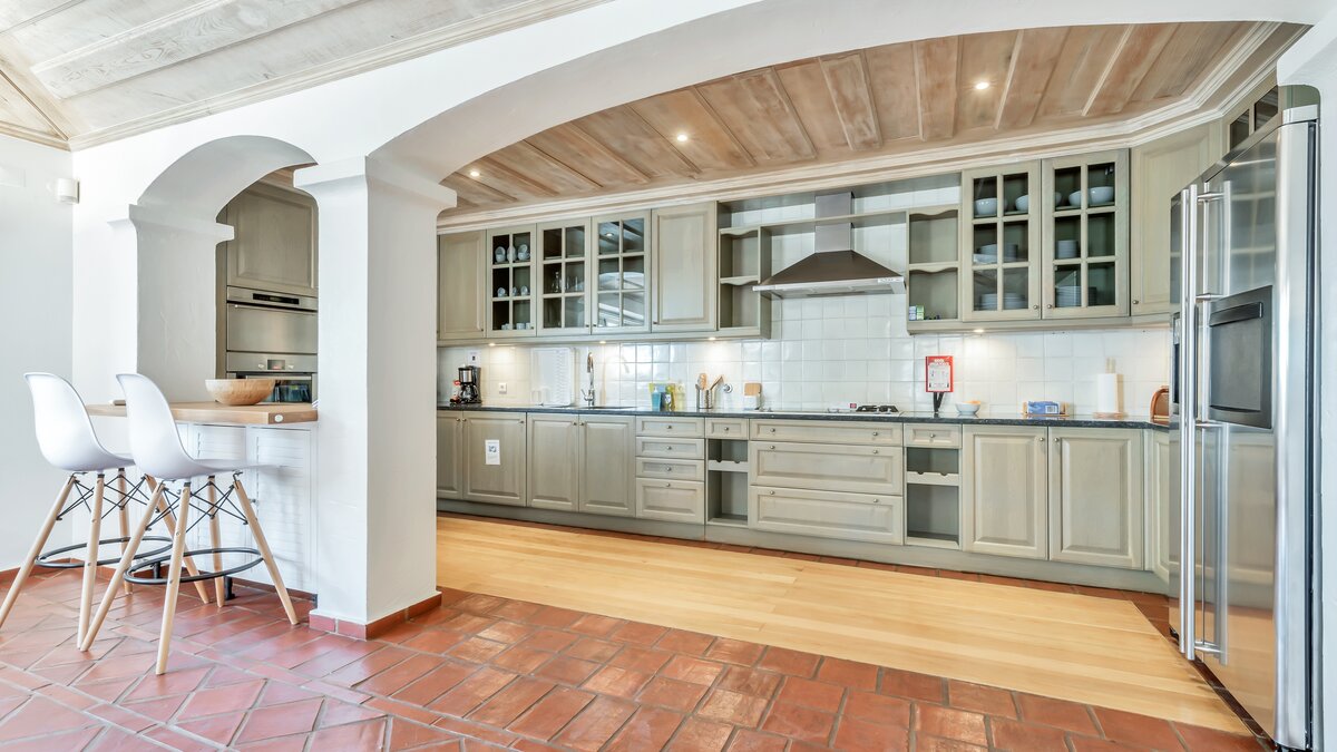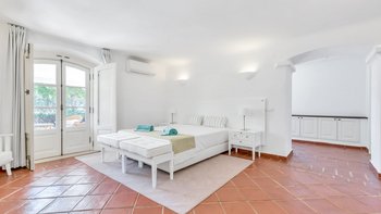 Diese weitläufige Villa ist von außen wunderschön traditionell und von innen stilvoll modern. Mit viel gemeinsam genutztem Raum für Geselligkeit und Entspannung ist es perfekt für Familien oder Gruppen von Freunden. Es gibt eine große, gut ausgestattete Küche / Esszimmer, die zu einem hellen und komfortablen Wohnzimmer führt, beide öffnen sich auf eine überdachte Terrasse, die zum Entspannen und Essen im Freien eingerichtet ist. Zwei Doppelschlafzimmer und ein Zweibettschlafzimmer befinden sich im Erdgeschoss, jedes mit Bad oder Dusche en suite, während sich im ersten Stock ein Doppelzimmer mit eigenem Duschbad und ein Zweibettschlafzimmer mit eigenem Bad befinden. Dessen letzte Doppelschlafzimmer befindet sich im Nebengebäude entlang einer windigen Schotterstraße vom Haupthaus entfernt. Dieser Raum bietet zusätzliche Privatsphäre und eignet sich für ein weiteres Paar oder Teenager. Bitte beachten Sie, dass er aufgrund seiner Lage nicht für jüngere Kinder geeignet ist.