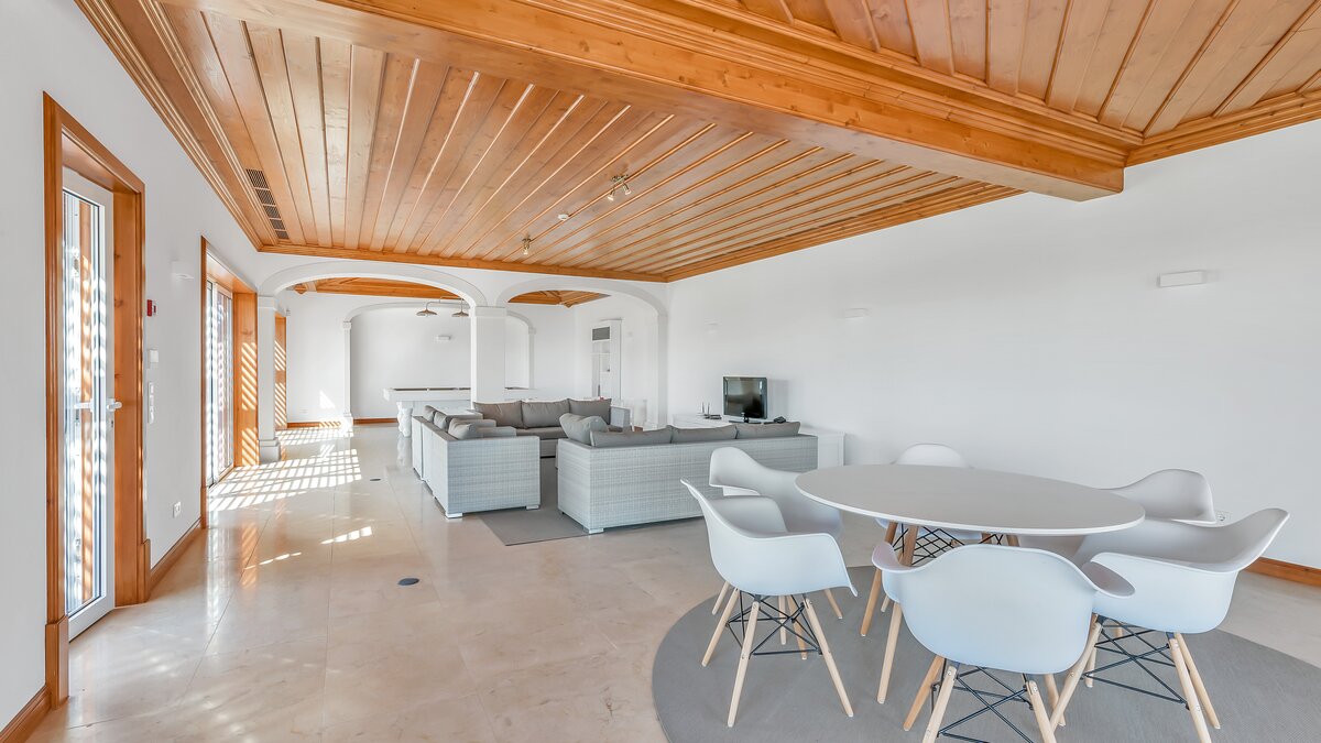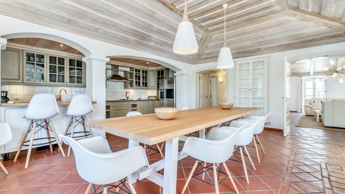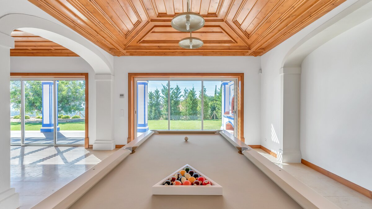 Das Erdgeschoss öffnet sich zu einem teilweise überdachten Innenhof mit Tischfußball und Tischtennis, wo man sich in der Mittagshitze abkühlen kann. Stufen führen zu Terrassengärten mit Bäumen, die reichlich Schatten spenden, und hinunter zur Poolterrasse mit flachen Rasenflächen. Perfekt gestaltet, um das Beste aus dem Panoramablick auf die Landschaft zu machen, finden Sie hier einen großen privaten Pool und ein separates Kinderbecken sowie ein Poolhaus mit Wohn-/Essbereich, Billardtisch, Dusche und Grill. Casa Malhao ist nur 16 km von den Stränden, Geschäften, Restaurants und dem Nachtleben von Vilamoura und Albufeira entfernt, während Boliqueime nur 4 km entfernt ist.