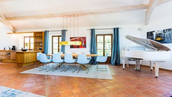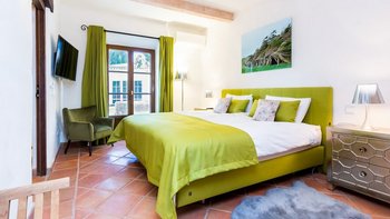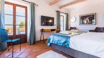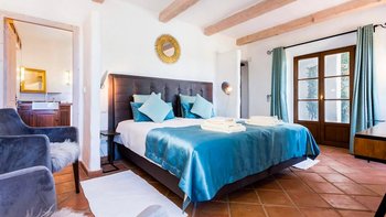 Im Erdgeschoss werden die Gäste von einer eleganten, modernen Küche begrüßt, die komplett mit hochwertigen Geräten ausgestattet ist, um das Essen mühelos und angenehm zu gestalten. Auf dieser Ebene befinden sich auch zwei wunderschön eingerichtete Doppelschlafzimmer, jedes mit eigenem Bad. Eines dieser Schlafzimmer hat direkten Zugang zur Terrasse mit Zugang zum Pool; ideal für ein Bad am frühen Morgen oder einen ruhigen Kaffee in der Sonne.