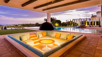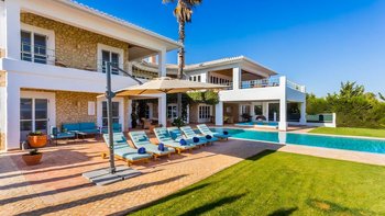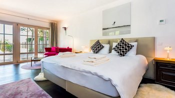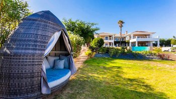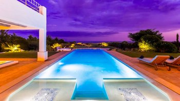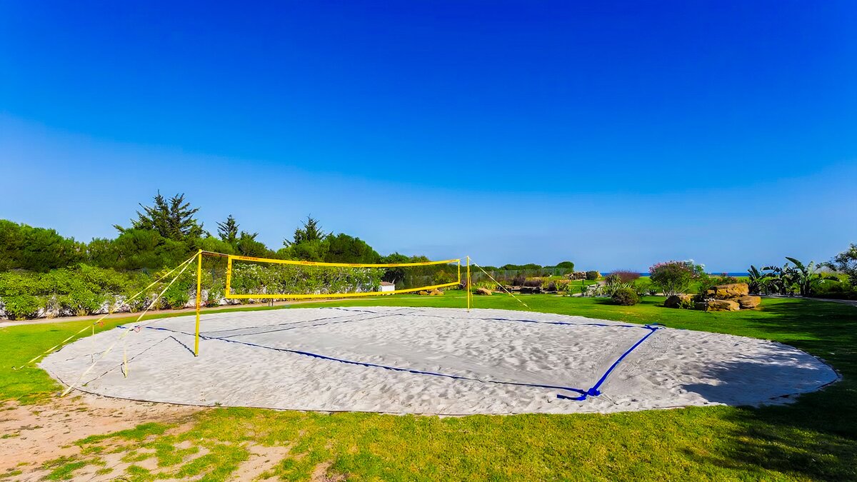 Treten Sie nach draußen und entdecken Sie eine private Oase für ultimative Entspannung. Im Mittelpunkt steht ein beheizter Pool, umgeben von Liegestühlen und wunderschön angelegten Gärten. Deren Dachterrasse mit Jacuzzi und gemütlichem Sitzbereich ist ein hervorragender Ort, um sich zu entspannen und die Landschaft zu genießen. Des Essens im Freien ist ein Genuss, mit einem Grillplatz und schattigen Sitzgelegenheiten für lange, gemütliche Mittagessen. Für Gäste, die aktiv bleiben möchten, verfügt die Villa auch über einen eigenen Volleyballplatz und einen eigenen Fitnessraum. Schließlich befindet sich im Gartenanbau ein zusätzliches Zweibett-Schlafzimmer, das sich ideal für Familien mit mehreren Generationen eignet.