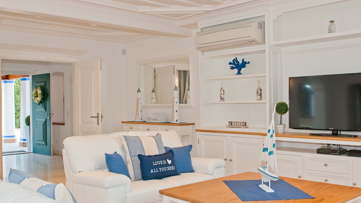 Sitz- und Essbereiche blicken auf den Pool und die Gärten, wo sich neben dem nachtlich beleuchteten Pool ein Planschbecken für Kinder befindet; Das Spielzimmer am Pool bietet Sonnenschirme und verfügt über einen Billardtisch, Tischfußball und ein Wohnzimmer mit TV; und es gibt einen eingebauten Grill für ein gemütliches Mittagessen in der Sonne. Dessen Haus befindet sich in ausgezeichneter Lage in Olhos de Agua, nur 200 Meter vom Sandstrand und nur ein wenig weiter von den Geschäften und Restaurants im Dorf entfernt.