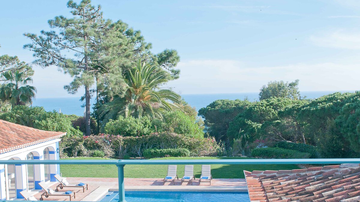 Eine außergewöhnliche Luxusvilla in Portugal, dieses stilvolle Haus ergänzt feine Einrichtungen mit schönen Rasengärten in einer beneidenswerten Lage in Strandnähe und mit Blick auf das Meer.