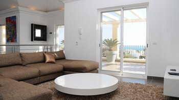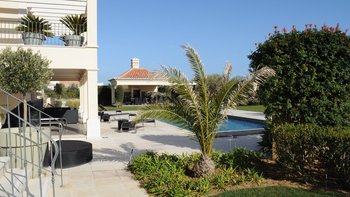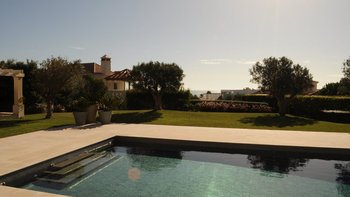 Diese moderne Villa mit vier Schlafzimmern bietet einen herrlichen Blick auf das Meer und einen schönen Garten mit Rasen und den zusätzlichen Vorteil der Resort-Einrichtungen.