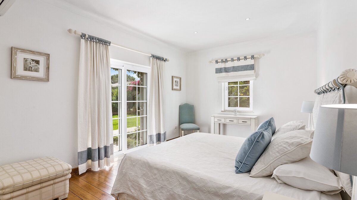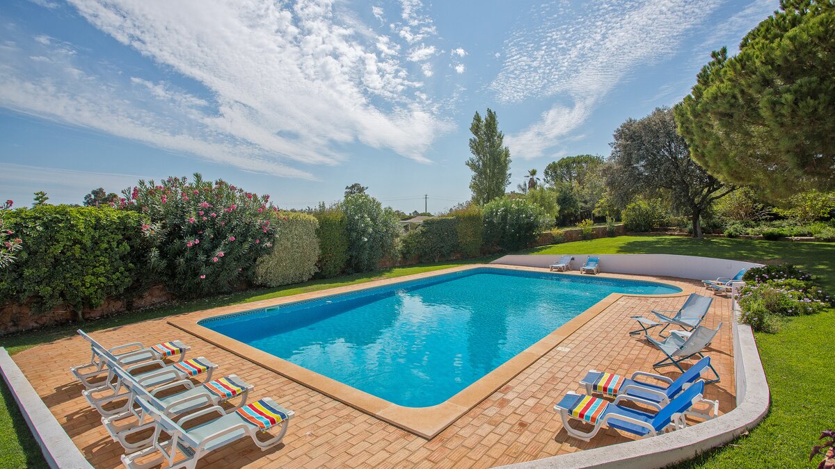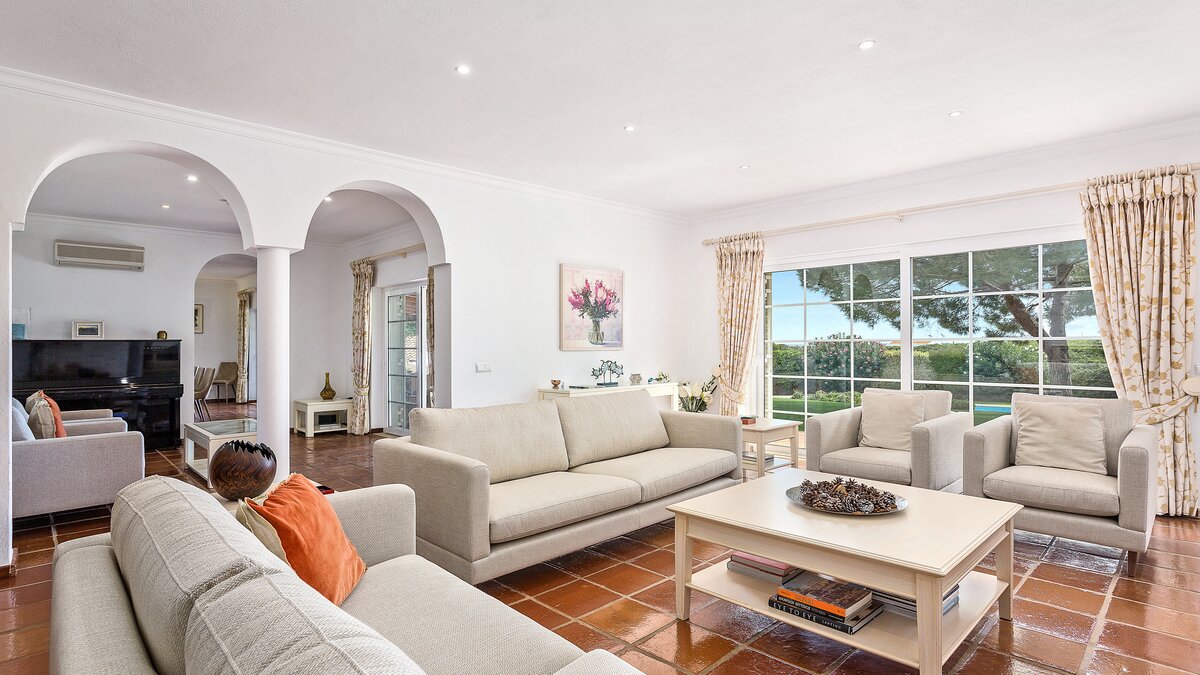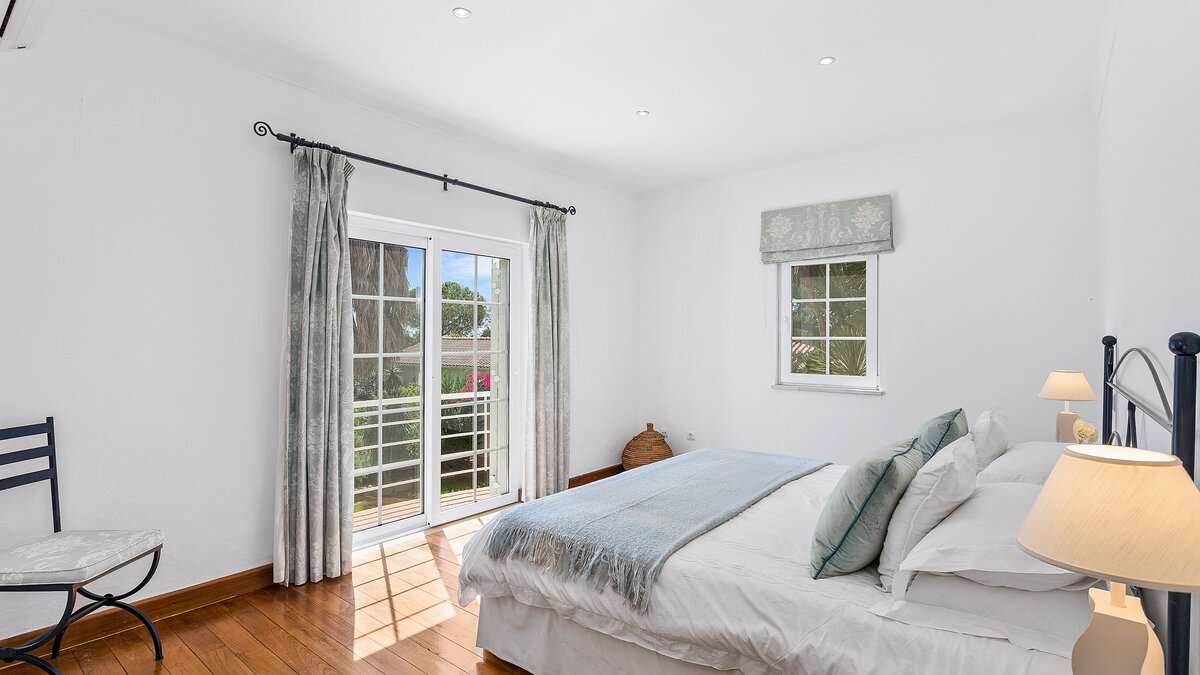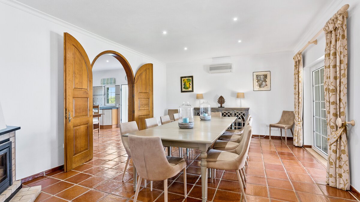 Diese geräumige Villa, die sich wunderbar ungestört an ihrem beneidenswert unberührten Ort sonnen lässt, bietet eine allumfassende Atmosphäre der Entspannung, perfekt für ein Familientreffen oder eine Gruppe von Freunden. Nick Faldos neuer Golfplatz Amendoeiras liegt auf einem 40 Hektar großen privaten Grundstück mit Avocado und Zitusbäumen, nur fünf Minuten Autofahrt entfernt. Deren sechs Schlafzimmer der Villa sind modern und komfortabel eingerichtet und verfügen jeweils über ein eigenes Bad, Klimaanlage und Fußbodenheizung unter den edlen Kastanienholzdielen. Deren Herzstück des Hauses ist das große Wohnzimmer, das sich auf eine tiefe und lange überdachte Terrasse öffnet. Dieser dient als Sitz- / Esszimmer im Freien mit Blick auf die Rasenflächen und den großen beheizten Pool, um eine zeitlose ländliche Szenerie dahinter zu erleben. Innerhalb der ummauerten Gärten befinden sich Baumgruppen, die Schatten spenden, und ein Grillplatz, der kunstvoll an einen alten Brotbackofen angepasst wurde. Hinter dem Haus befindet sich ein Tennisplatz in Meisterschaftsgröße, wo Tennistraining organisiert werden kann und es gibt einen schattigen Spielbereich mit Tischtennis und Tischfußball. Deren Villa ist nur eine kurze Autofahrt von Geschäften, Banken und Restaurants in historischen Silves entfernt. Dieser alte maurische Burgstadt beherbergt auch eine Reihe von verschiedenen Festivals im Sommer und verfügt über eine alte Korkfabrik, die heute ein Museum und ein Kulturzentrum und ist, sowie eine Auswahl an preiswerten und lustigen Restaurants und Bars beherbergt. Das Haus ist 10 km von den Sandstränden und es gibt mehrere andere Strände und Städte innerhalb einer kurzen Fahrt erreichbar.