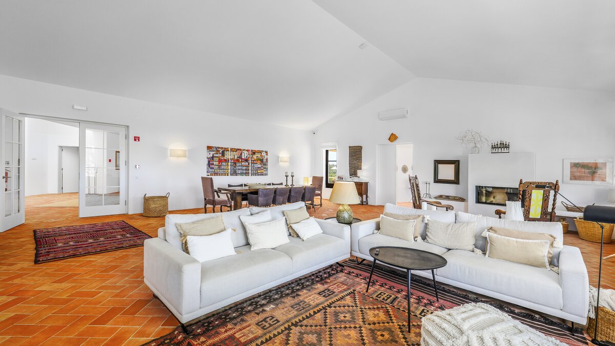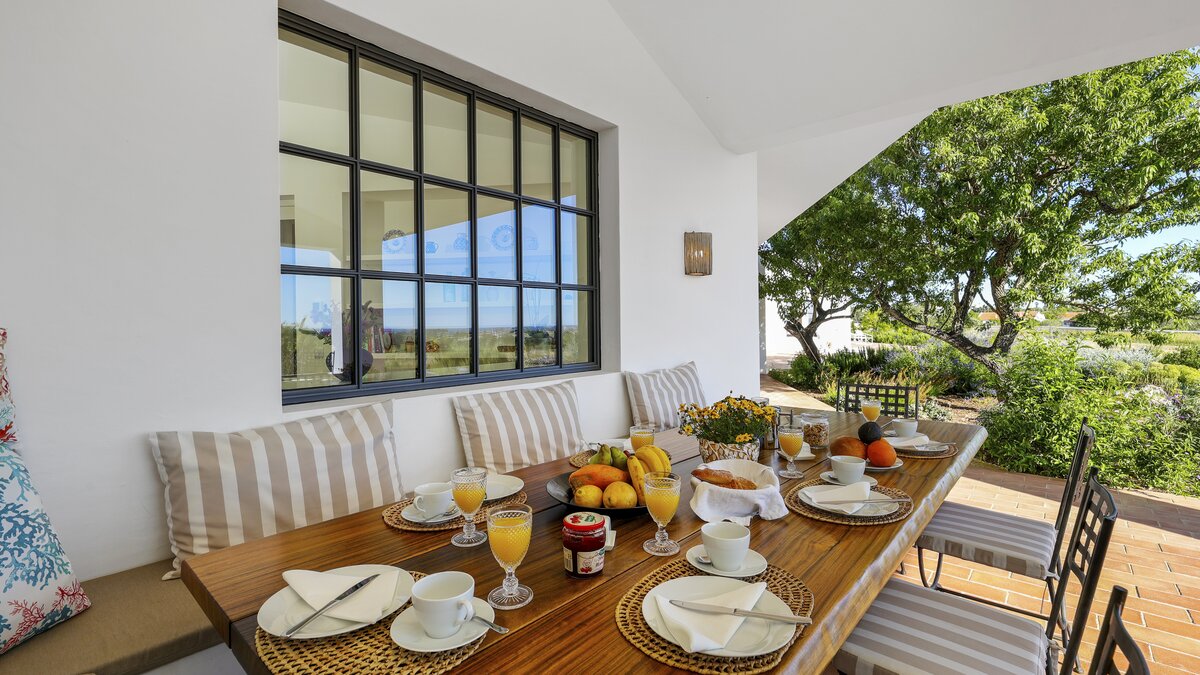 Stilvoll, geräumig und hervorragend gelegen, ist Quinta Brisa ein moderner Rückzugsort, der für ein einfaches, elegantes Leben konzipiert wurde. In einer ruhigen Landschaft etwas außerhalb von Albufeira gelegen, verbindet diese beeindruckende Villa moderne Architektur mit einer ruhigen Umgebung, ideal für Familien oder Gruppen, die sowohl Entspannung und auch einfachen Zugang zu den Highlights der Algarve suchen. Im Inneren ist die Villa hell und wunderschön eingerichtet, mit einem großen offenen Wohn- und Essbereich mit Kamin, modernen eklektischen Mid-Century-Möbeln und einer eleganten Küche mit hochwertigen Geräten und einem ungezwungenen Essbereich. Jedes der fünf Schlafzimmer mit eigenem Bad öffnet sich auf eine Gemeinschaftsterrasse mit herrlichem Blick auf die umliegende Landschaft, ideal für ruhige Morgen oder Abende zum Entspannen. Im Freien erstreckt sich die Terrasse nach Süden zum Meer und nach Norden rund um den Poolbereich und bietet eine Vielzahl von Bereichen zum Essen und Entspannen. Der private Pool ist von Liegestühlen und schattigen Sitzgelegenheiten umgeben, während ein eingebauter Grill und ein frischer Essbereich im Freien das Leben im Freien einfach und angenehm machen.