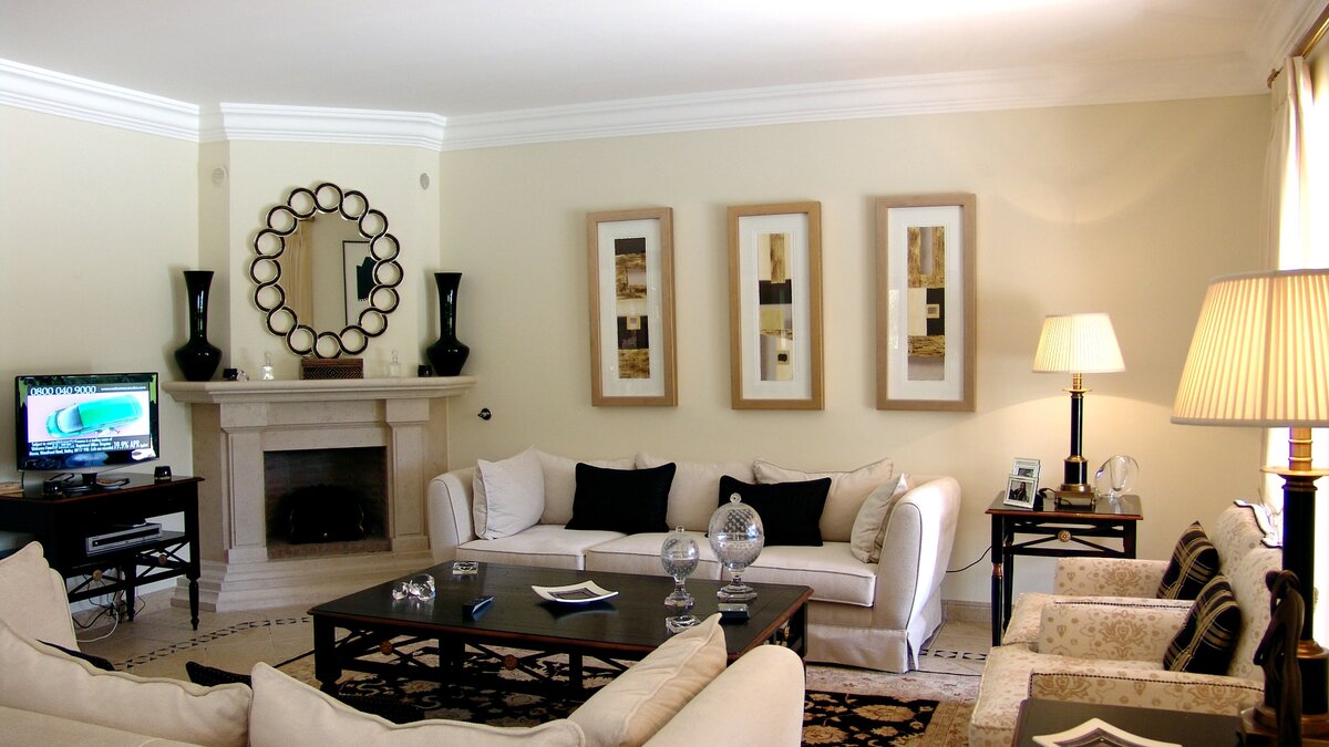 Im Erdgeschoss befinden sich ein Wohnzimmer, ein Esszimmer und eine Küche. Dessen Wohnzimmer ist hell, aber gemütlich, mit einem Kamin und vielen weichen Sitzgelegenheiten, in diesem Raum gibt es auch einen informelleren Ort zum Essen, wenn die Gäste dies wünschen. Dessen Esszimmer ist eher formell, mit französischen Türen, die auf die Terrasse führen. Deren Küche ist komplett ausgestattet, mit viel Platz auf der Arbeitsplatte. Auf dieser Etage befinden sich auch zwei Doppelschlafzimmer mit Bad en suite, von denen eines einen privaten Zugang zur Poolterrasse hat.