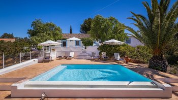 Und direkt unterhalb dieser großen Veranda befindet sich eine gepflasterte Sonnenterrasse, die teilweise in Palmenschatten liegt und einen kühlen Infinity-Pool umgibt. Ein abfallender, gestufter und geschützter Weg führt vom Sandy Bay Cottage zum riesigen, weichen Sandstrand, der nur 300 M darunter liegt. Geschäfte und Restaurants in Ferragudo sind zu Fuß in 1,2 km Entfernung und Tennis, Golf und Wassersport sind im Umkreis von 4 km zu erreichen.