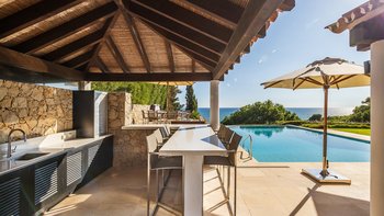 Zu den beispiellosen Einrichtungen gehören ein Fitnessraum, ein Infinity-Pool, der von möblierten Sonnenterrassen umgeben ist, und ein Jacuzzi am Pool und eine Bar und Bar mit Blick auf das Meer. Deren Wohnzimmer ist geräumig, kühl und modern, und jedes der fünf Schlafzimmer verfügt über ein Bad oder Dusche en suite. Kochservice ist hier zum Frühstück und Mittagessen inbegriffen und für den Vier-Jahreszeiten-Komfort verfügt die Villa Balbina über Zentralheizung, Poolheizung und ein Spielzimmer mit Blick auf das Meer. Deren Villa ist zu Recht beliebt und liegt nur wenige Schritte von zwei Strandrestaurants und einen km vom bekannten Restaurant Villa Joya mit Michelin-Sternen sowie Geschäften, Restaurants und Sport an Land und Meer entfernt.