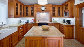 In der Villa Palma, die ideal für das Leben im Freien konzipiert wurde, kann die ganze Familie viel Spaß haben. Auf der Terrasse befindet sich ein 12 m langer Pool für Erwachsene neben einem eigenen Kinderbecken und ein schattiger Essbereich wird von einer Außenküche und einem eingebauten Grill serviert. Es gibt Tischfußball, ein Spielzimmer mit Billardtisch und einen großen Garten mit Rasen, in dem die Kinder spielen können, während die Eltern am Pool entspannen. Deren offene Wohnzimmer im Inneren bietet Platz für die Gäste, auf bequemen Sitzgelegenheiten zu entspannen und im Innenbereich zu speisen. Denen Unterkünfte befinden sich alle auf einer Ebene und verfügen über ein Schlafzimmer mit Doppelbett und Bad en suite und zwei Zweibettzimmer.