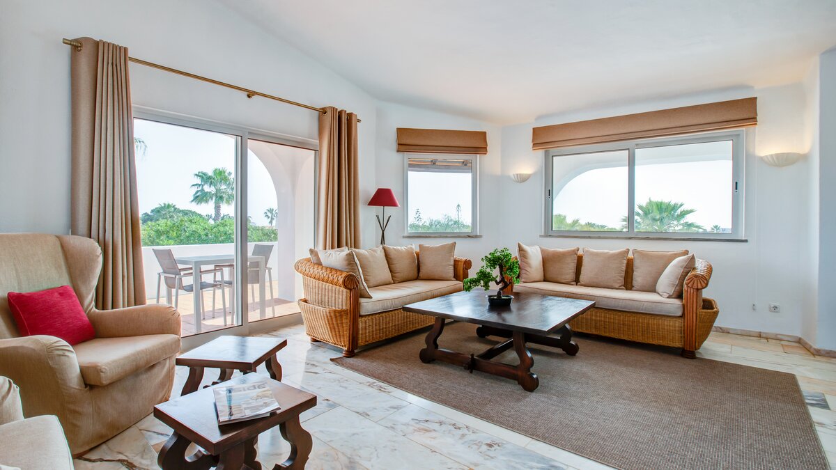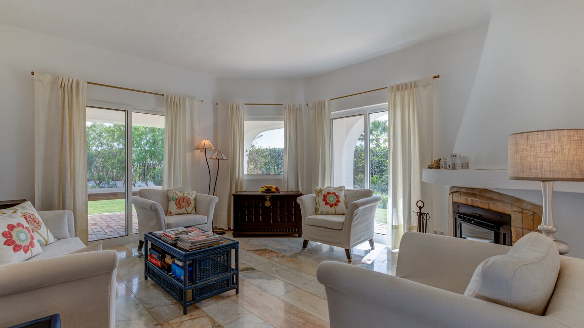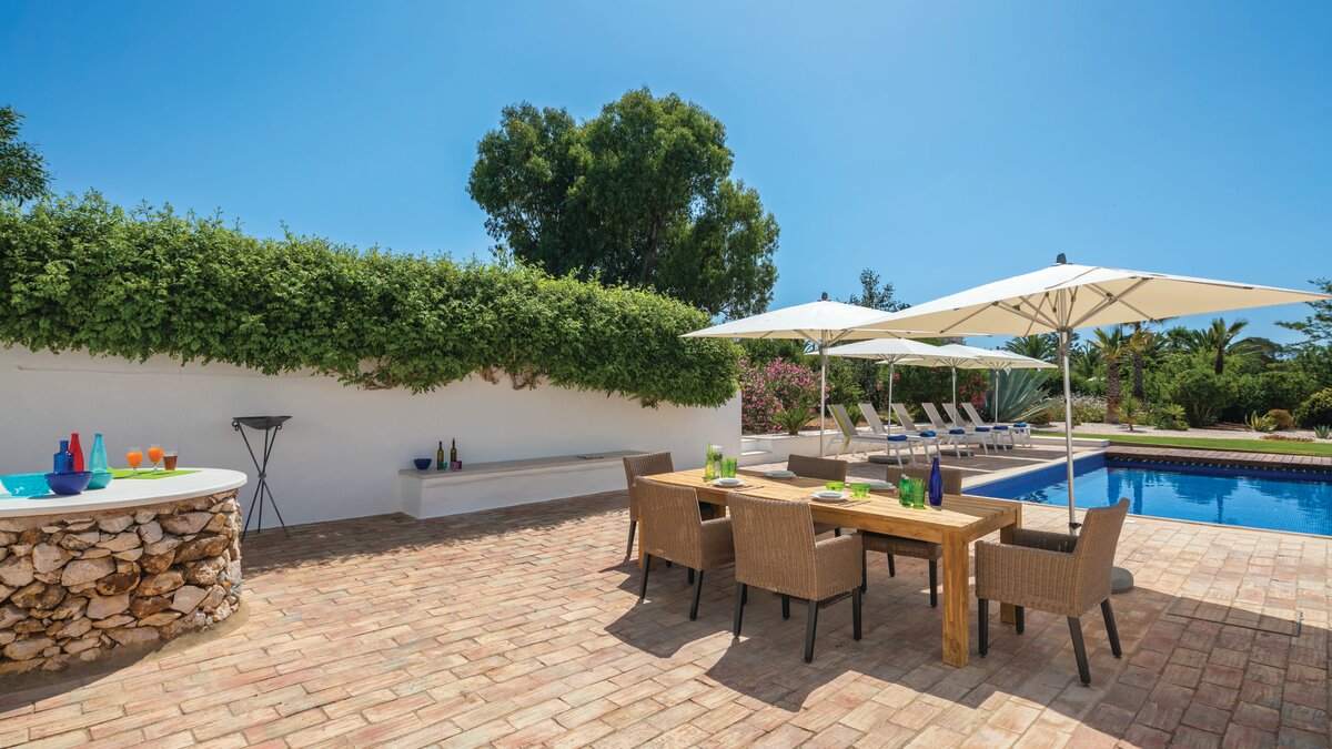 Nicht weit von einigen der besten Strände der Algarve entfernt, ist diese klassische Villa ein großartiges Beispiel für traditionellen portugiesischen Stil. Sie ist abgerundet und weiß getüncht, mit einem wunderschönen, aber einfach gestylten Äußeren und es gibt eine riesige Rundum-Terrasse, die sich im ersten Stock mit Blick auf das Meer und den Garten sonnen kann. Denen von Bougainvillea gesegneten Gärten sind wunderschön gepflegt, und es gibt einen himmlisch blau gefliesten Swimmingpool draußen (gegen Aufpreis beheizbar). Mit vielen Liegen und Brollies gibt es viele Plätze zum Sonnenbaden auf der riesigen Sonnenterrasse, neben einem schönen Außentisch für Mahlzeiten im Freien. Ins Innere bietet die Villa eine Mischung aus traditionellem maurischen Stil mit modernem Komfort. Es ist traditionell, aber klassisch, mit vielen antiken Elementen und reduzierten Wänden. Deren Hauptwohnbereiche befinden sich alle im ersten Stock – es gibt eine moderne Küche mit Frühstückstheke und Zugang zur Veranda mit herrlichem Meerblick sowie einen großen Wohn-/Essbereich mit hohen Decken und einem modernen Smart-TV. Es gibt auch eine Gästetoilette mit Dusche auf dieser Etage. Gehen Sie nach unten zu den Schlafzimmern – es gibt zwei Zweibett-Zimmer mit Gemeinschaftsbad und ein Hauptschlafzimmer mit Kingsize-Bett mit einem modernen, ebenerdigen Duschbad. Aller Zimmer folgen einem ähnlichen traditionellen Stil und verfügen über Terrassentüren, die zum Pool oder zum schönen Garten führen.