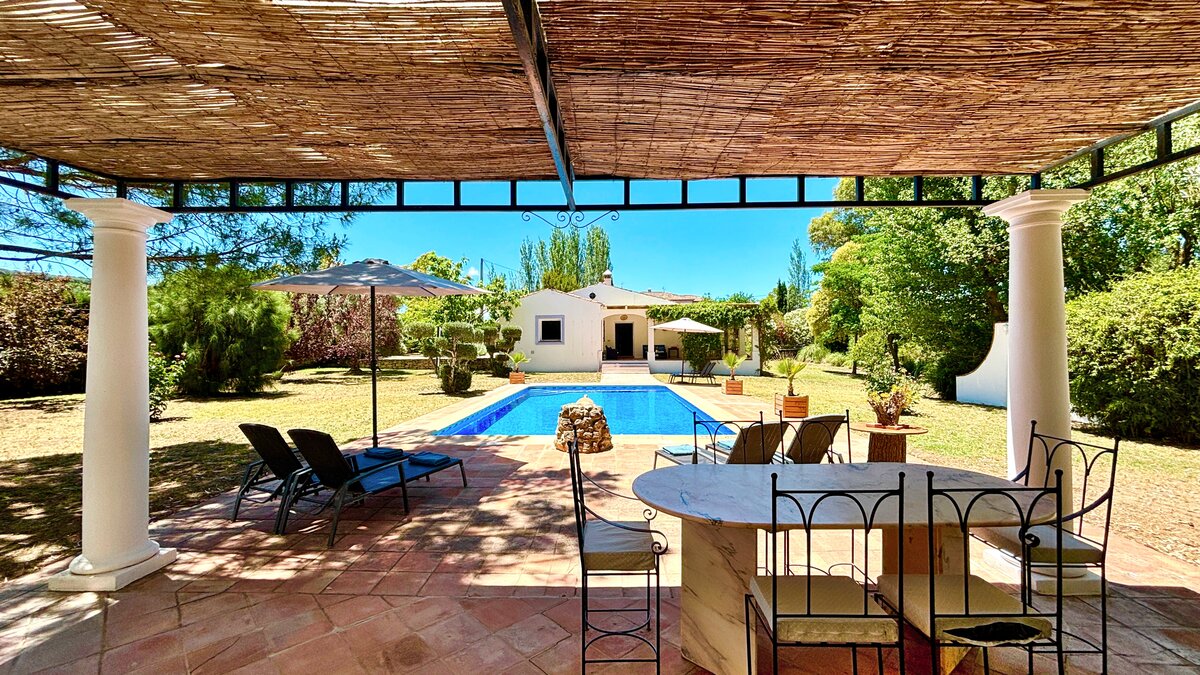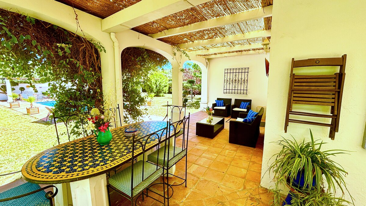 Gepflegte Rasenflächen und anmutige Bäume umgeben diese fröhliche Familienvilla, die ein natürliches Kissen der Privatsphäre bildet und einen einladenden 10-Meter-Pool umrahmt. An einem Ende bietet eine schöne Pergola am Pool einen schattigen Platz für lange und gemütliche Mahlzeiten im Freien. Ans andere Ende befindet sich die Villa selbst, die sich ein paar Stufen über dem Garten erhebt und sich zu einer zweiten Ess- oder Sonnenterrasse öffnet. Einfach eingerichtet, mit einem offenen Wohn-/Esszimmer und drei Schlafzimmern mit eigenem Bad, ist El Laurel sicherlich groß genug, um bequem eine Familie unterzubringen, aber seine intime und ungezwungene Atmosphäre macht es ebenso attraktiv wie ein Hideaway nur für zwei. Es teilt sich ein 3 Hektar großes Grundstück mit der kleineren Villa La Rondita und dem großen Finca la Alameda Haus, wenn es zusammen bestätigt wird. Wird es zusammen mit einem (oder beiden) von diesen gebucht, ist es eine gute Wahl für zwei Familien oder eine Gruppe von Freunden, die zusammen Urlaub machen, und der Kochservice könnte das Sahnehäubchen auf dem Kuchen sein. Ländlich, aber nicht abgelegen, ist die Villa nur 5 km von Ronda entfernt.