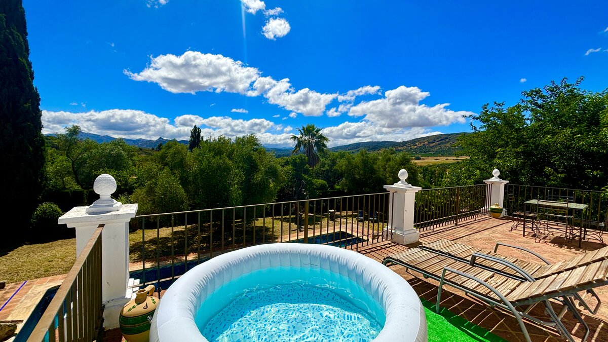 Die Finca la Alameda ist ein schönes altes Haus in einer ruhigen Landstraße im Llano de la Cruz-Tal. Sie ist wunderschön in einem frischen Landhausstil eingerichtet, der genau zu ihrer Lage passt. Dessen Erdgeschoß fließt durch weite Torbögen vom einladenden Wohnzimmer zum fröhlichen Essbereich, während französische Türen auf die Terrassen mit Blick auf den Garten führen, die zum Entspannen eingerichtet sind und voller Topfpflanzen sind, die Farbe und Charakter verleihen. Die Schlafzimmer sind groß und mühelos elegant, die meisten mit eigenem Bad oder Dusche und Zugang zu einer Terrasse oder einem Balkon. Zusätzlich zum 15 Meter langen Swimmingpool beherbergt das Grundstück Walnussbäume, nahegelegene Olivenhaine, einen Gemüsegarten und Fischteiche und einen herrlichen Blick auf die umliegenden Hügel. Auf beiden Seiten der Villa, jede mit eigenem Pool, konnten die kleineren Villen El Laurel und La Rondita zusammen gebucht werden, um einen ausgezeichneten Ort für eine große Gruppe zu bilden. Ronda ist nur 5 km entfernt für Geschäfte, historische Sehenswürdigkeiten und großartige Tapas-Bars.