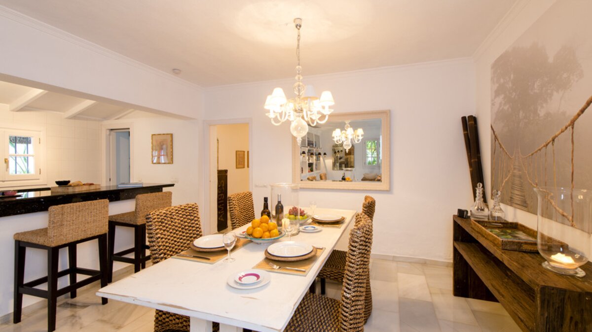 Die gepflegten Gärten von La Palmita bieten ein Gefühl der Privatsphäre, aber dieses Haus ist ideal gelegen, nur 1,5 km vom Strand von Nueva Andalucia und weniger als 2 km vom berüchtigten Puerto Banús entfernt.