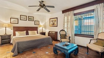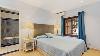 Die Master-Suite ist eine herrlich geräumige Oase mit einem Himmelbett und einem versenkten Jacuzzi, und zwei weitere Schlafzimmer im Haupthaus werden durch eine separate, in sich geschlossene Casita ergänzt. Es gibt auch ein neu gebautes Nebengebäude mit einem fünften Schlafzimmer, eigenem Bad und separatem Eingang, was dies zu einer fabelhaften Wahl für Familien oder Freunde macht. Für größere Gruppen teilt sich das benachbarte La Palmita den gleichen Haupteingang, bietet aber die perfekte Option für mehr Platz. Denen beiden Villen sind wunderschön privat und dennoch eine fantastische Wahl für größere Gruppen von Familien oder Freunden. Eine große Auswahl an Geschäften, Restaurants, Bars und der Strand sind alle leicht zu Fuß erreichbar.