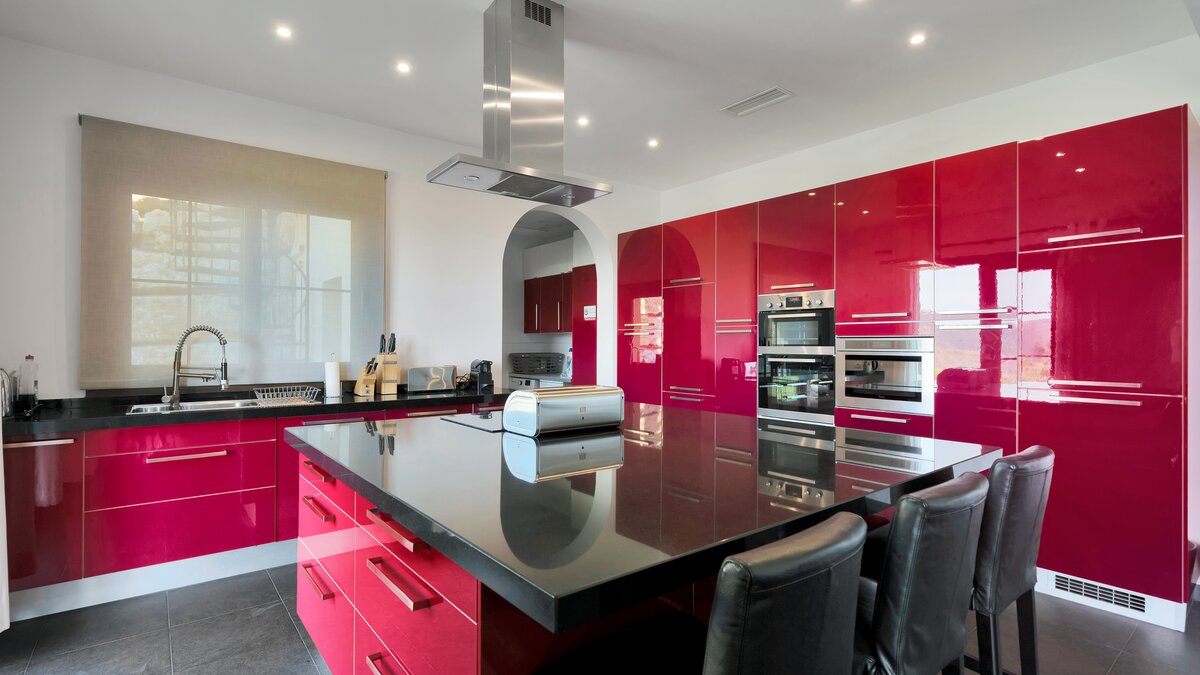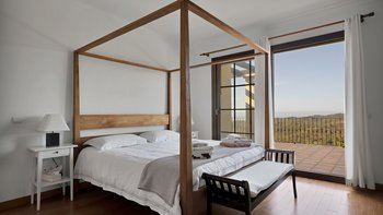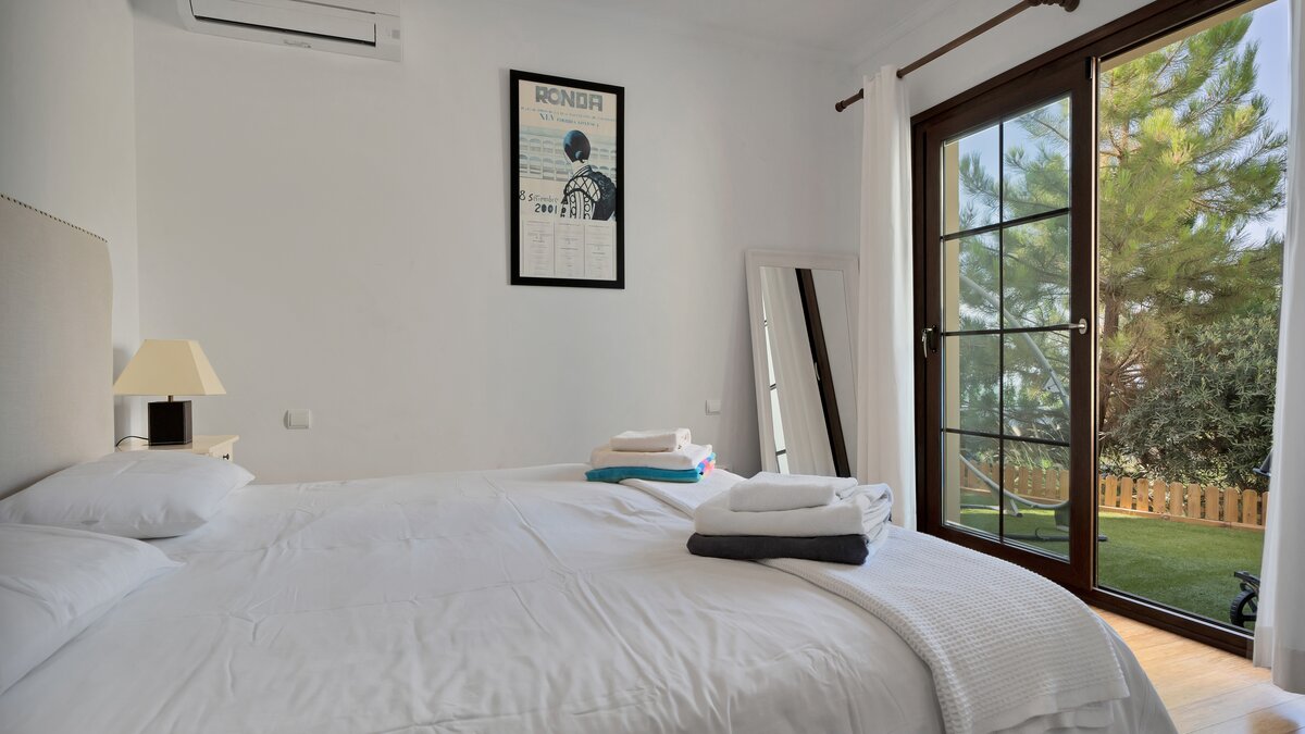Das Innere der Unterkunft erstreckt sich über zwei Etagen und die Klimaanlage befindet sich im gesamten Gebäude. Deren Unterkunft verfügt über fünf schöne Schlafzimmer, von denen zwei auch als Zweibett- oder Doppelzimmer eingerichtet werden können, jedes mit eigenem Bad, und alle mit Blick auf das Tal und das Meer und dahinter.