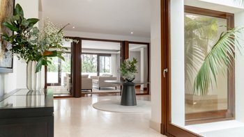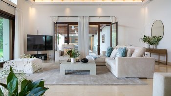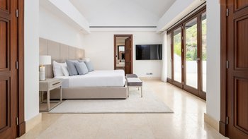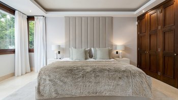Villa Magnifico besticht durch ein harmonisches und poliertes Dekor mit makellosen Holzmöbeln und hochwertigen Oberflächen. Dieses atemberaubende Anwesen befindet sich in bester Lage und bietet einfachen Zugang zum glamourösen Marbella mit seinen Boutiquen, Restaurants und Strandclubs. Wenn und in dieser herrlichen Oase angekommen, finden Sie auf dieser Etage ein geräumiges Schlafzimmer mit Doppelbett und eigenem Wohnbereich. Ziehen Sie sich weiter oben zurück, um ein Hauptschlafzimmer mit Kingsize-Bett und eigenem Bad mit eigener Terrasse zu finden. Drei weitere Doppelschlafzimmer mit Bad en suite befinden sich ebenfalls auf dieser Etage. Für diejenigen, die ultimative Entspannung suchen, entdecken Sie das untere Erdgeschoss. Ausgestattet mit einem Hallenbad, einer Sauna, einem Türkischen Bad und einem Fitnessraum haben Sie alle Zutaten, um ein Gefühl der Ruhe und des Wohlbefindens zu erleben. Ob Sie ein erfrischendes Bad nehmen, in der Sauna entspannen oder im Fitnessraum trainieren und die Abendessen im Freien ausklingen lassen möchten, die Villa Magnifico hat alles. Ebenso beeindruckend ist der Außenbereich mit zwei Swimmingpools mit bezaubernden Wasserfällen. Umgeben von üppigen Gärten und großzügigen Liegestühlen bietet es den perfekten Rahmen, um sich zu entspannen und die Natur zu genießen und. Wenn Sie Lust auf einen Abend haben, gehen Sie ins Heimkino oder gehen Sie in die gut ausgestattete Bar und das Spielzimmer und genießen, um sich in Ihrem Zuhause fern von zu Hause zu unterhalten. Diese Villa ist ideal für alle, die Privatsphäre und Ruhe suchen und dennoch in unmittelbarer Nähe der lebhaften, begehrten Stadt Marbella sein möchten.