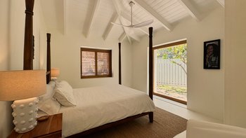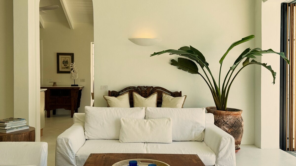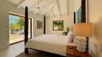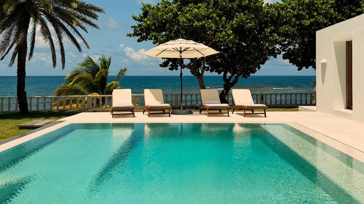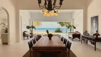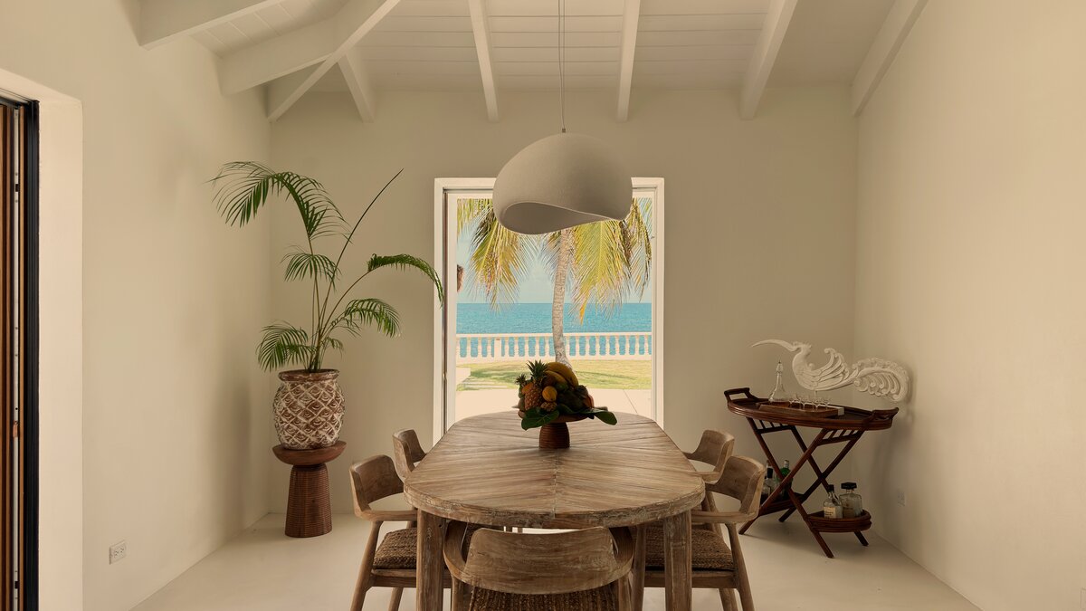 Die Villa wurde entworfen, um den weiten Blick auf das Karibische Meer zu maximieren. Vom Wohnbereich, der halb im Freien liegt, gelangen Sie auf die Terrasse und auf die Poolterrasse, wo Sie mit Liegestühlen bei einem Buch verweilen oder einfach dem türkisfarbenen Wasser zusehen können. Für eine Abwechslung bietet ein Pavillon einen schattigen Platz für ein Mittagessen im Freien, während der zentrale Essbereich ideal für das Abendessen ist. Dessen gut ausgestattete Küche mit Speisekammer und separater Küche macht die Selbstverpflegung zu einem Vergnügen.