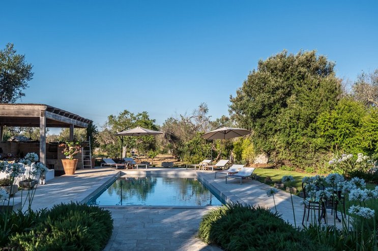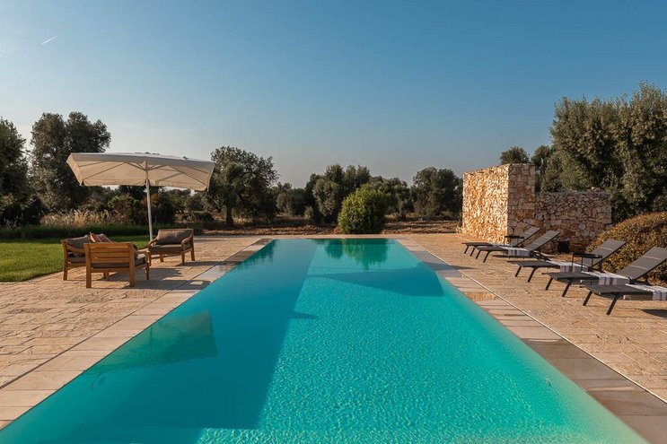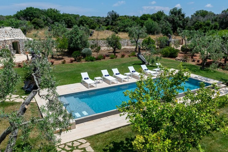 Dieses private Luxusresort mit maßgefertigten Möbeln innen und außen ist nur eine kurze Autofahrt von ausgezeichneten Restaurants im malerischen Cisternino und Ostuni entfernt. Eine der herausragendsten Trulli-Immobilien, die wir je gesehen haben.