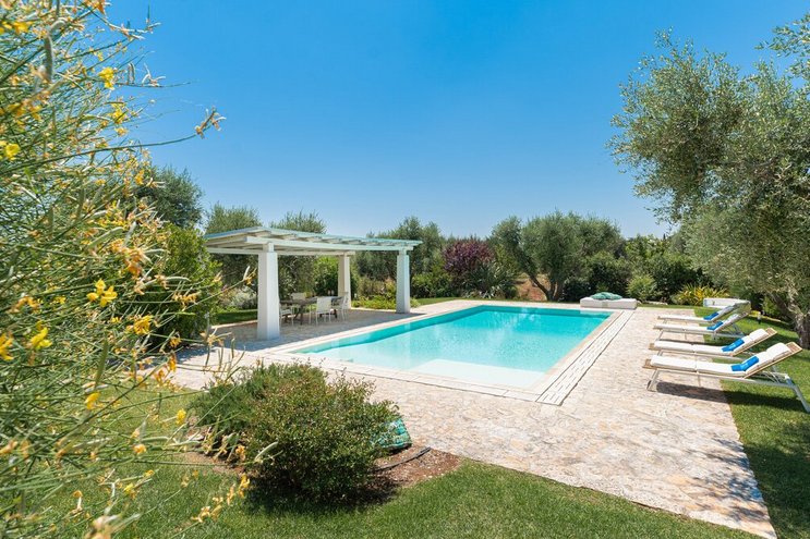 Eine sehr familienfreundliche Villa in Apulien, diese sehr komfortable Villa liegt inmitten privater Olivenhaine, mit einer tollen neuen Loggia im Garten mit Blick auf den Pool und die Olivenhaine. In der Nähe von Sandstränden und preiswerten Restaurants.