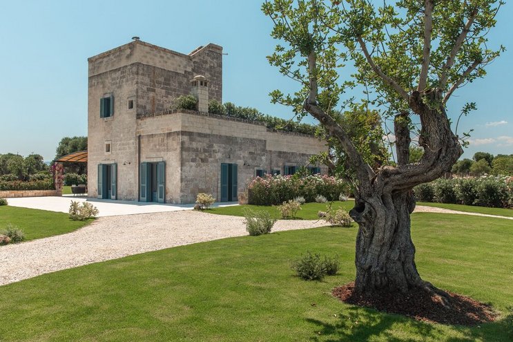 Die Masseria La Corte ist ein elegantes apulisches Bauernhaus mit sechs Schlafzimmern und einladenden Außenbereichen, nur etwas mehr als drei Kilometer von der Küste entfernt.