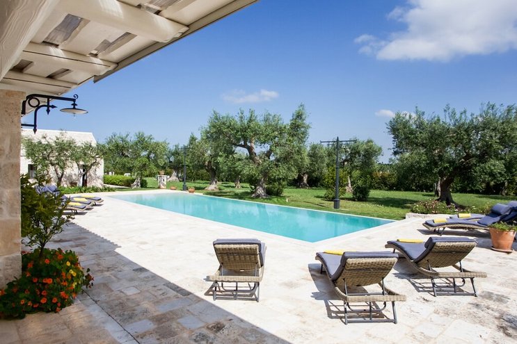 Diese stilvolle Villa ist ein ruhiger Rückzugsort aus dem 18. Jahrhundert im Herzen Apuliens und verfügt über fünf Schlafzimmer mit eigenem Bad, einen Salzwasserpool, Panoramaterrassen und eine Außenküche.