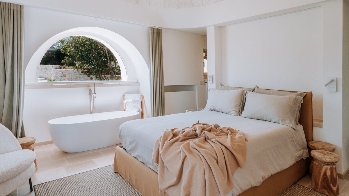 Dimora Pomona ist ein bezauberndes Trullo-Anwesen in hübschem Apulien. Denen Innenräume sind mit schickem, modernem Dekor eingerichtet, gepaart mit hellen, weiß getünchten Ziegelwänden. Im Inneren finden die Gäste ein schönes Wohnzimmer, das in neutralen Farbtönen gehalten ist. Der Essbereich ist ähnlich gestaltet und verfügt über einen eleganten runden Tisch mit Blick auf den Pool und die Gärten und Gärten. Dieser Villa verfügt über vier Doppelschlafzimmer. Jedes mit einem Kingsize-Bett und einem Duschraum und en suite für ein luxuriöses Gefühl.