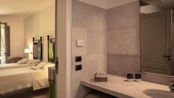An der Seite des Hauptgebäudes befinden sich die Ställe für alle übrigen Schlafzimmer. Denen ehemaligen Ställe (mit 4 Zweibettzimmern, die auf Anfrage auch als Doppelzimmer zusammengestellt werden können), ein kompakteres Zweibettzimmer (am besten als Doppelzimmer genutzt werden) mit Blick auf den Pool und 1 Doppelöffnung zum Parkplatz, alle mit Dusche en suite.