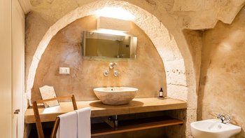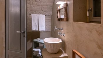 I Gelsi ist ein fabelhaftes Beispiel für die vielseitigen Trulli-Häuser der Region und ist von Kopf bis Fuß in freiliegenden Steinböden, meterdicken, breiten Bögen in wunderschön gewölbten Schlafzimmern und raffiniert gestalteten Duschräumen, in denen Ecken und Winkel als praktische Ablageflächen genutzt werden. Obwohl all dies das Haus natürlich kühl hält, wird in der beliebten und gut gestalteten Villa nichts dem Zufall überlassen. Daher nimmt die Bodenkühlung ihren Platz in einer Reihe moderner Einrichtungen ein, zu denen WLAN und ein iPad gehören. Des Hauses ist überall auf hohem Niveau eingerichtet. Alle Zimmer haben ein eigenes Bad oder eine Dusche, die meisten sind flexibel für zwei oder zwei Personen eingerichtet, und es gibt ein tonnengewölbtes Zweibettzimmer, das von einer oberen Terrasse aus zugänglich ist. Auf dem Grundstück befinden sich mehrere Bereiche zum Entspannen und Essenund in der Sonne oder im Schatten; eine Außenküche für Mittagessen im Freien; und ein brandneuer und beheizbarer Swimmingpool. Weitere Verbesserungen umfassen einen neuen eleganten Eisenpavillon mit erweiterter Beschattungskapazität, der vom Hauptgebäude installiert wurde und jetzt mehr Beschattungskapazität bietet und Schiebetafeln, die ich je nach persönlicher Präferenz verschieben kann. Des Anwesen bietet auch optionale Upgrades für diejenigen, die einen zusätzlichen Service bevorzugen. Diese Upgrades beginnen mit einem täglichen Reinigungsservice, Frühstücksservice oder einer Kombination aus beidem. Ein Upgrade auf einen Full-Service-Koch und Haushälterin ist ebenfalls verfügbar. Preise für Upgrades sind auf Anfrage erhältlich. I Gelsi ist nur 4 km von den Annehmlichkeiten in Alberobello entfernt, mit mehreren kleinen Städten im Umkreis von 20 km und einem Trio von Stränden im Umkreis von 30 km.