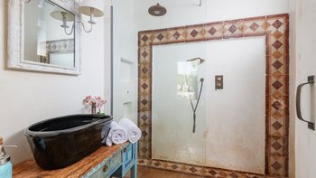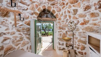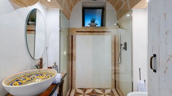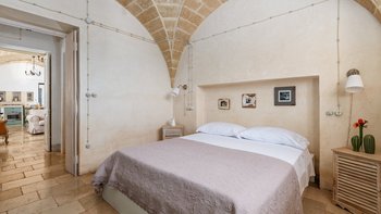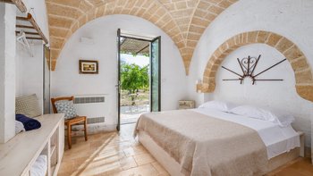 Das Trullo-Schlafzimmer steht nur für 7 Personen zur Verfügung. Bei Belegung von bis zu 6 Personen bleibt es geschlossen. Bitte beachten Sie, dass dieses Zimmer über kein Bad verfügt und daher ein Bad im Haupthaus nutzen muss. Dessen Trullo ist bis zum 17. Mai und ab dem 20. September nicht verfügbar. In diesen Zeiträumen beträgt die Maximalbelegung 6 Personen.