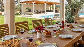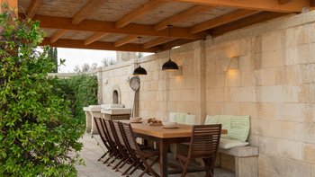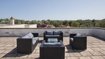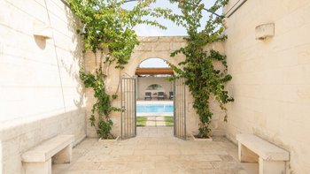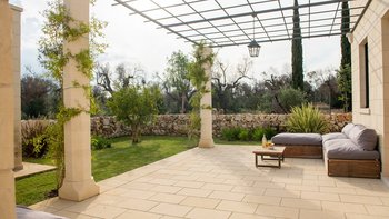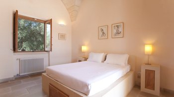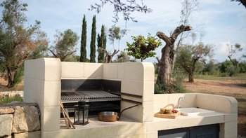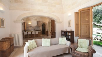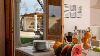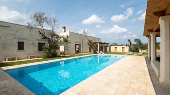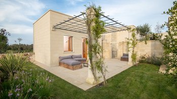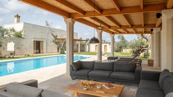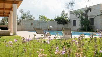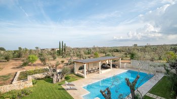 Diese moderne Luxusvilla in Apulien wurde von meisterhaften Handwerkern mit viel Liebe zum Detail erbaut, von den Gewölbedecken bis zu den handgeschnitzten Sandsteinmauern. Sie ist eine moderne Luxusvilla in Apulien, die den Grundriss und die schlichte Eleganz der traditionellen Bauernhäuser der Region widerspiegelt. Riesige Holztüren füllen das gewölbte Tor in den Innenhof, der groß genug für eine Partie Badminton ist und einen Pizzaofen, einen Grill und einen großen Esstisch unter Pergola-Schatten beherbergt. Eine Außentreppe führt zu einer sonnenverwöhnten Dachterrasse, ein gewölbter Portikus schützt die Türen zu drei Schlafzimmern mit Bad und Fensterläden verbinden den Außenbereich mit einem offenen Wohnzimmer und einer Küche, wo Edelstahl und zeitgenössische Kunst die Einrichtung im Landhausstil ergänzen. Ein Gästeanbau bietet zwei weitere Schlafzimmer, während zusätzlicher Außenbereich im ummauerten Garten liegt, der einen 15 Meter langen Pool mit Blick auf die Olivenhaine mit einem schönen Mittagessen im Freien umgibt. Zusätzlich zum Gästeanbau gibt es eine neue Gartensuite mit einem geräumigen Schlafzimmer mit Doppelbett, das zu einer privaten Terrasse führt. Zu den weiteren Neuerungen gehören eine Pool-Loggia mit weichen Sitzgelegenheiten und Platz für Sonnenliegen und ist auch ein großartiger Ort für Freiluftkino.