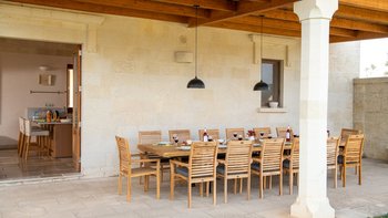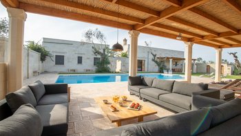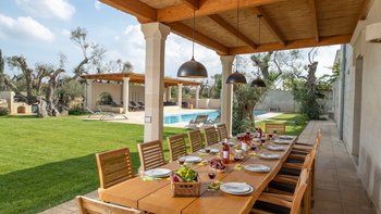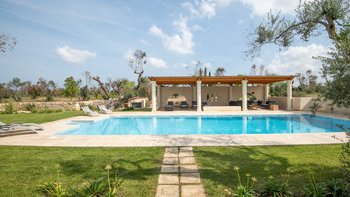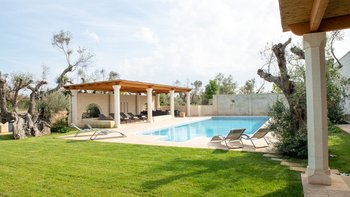 Eine sehr familienfreundliche Villa in Apulien, diese sehr komfortable Villa liegt inmitten privater Olivenhaine, mit einer tollen neuen Loggia im Garten mit Blick auf den Pool und die Olivenhaine. In der Nähe von Sandstränden und preiswerten Restaurants.