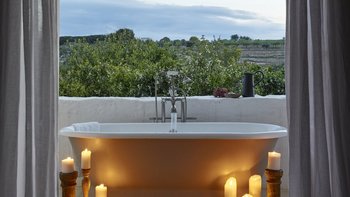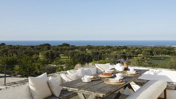 Draußen strotzt der Garten vor Leben. Der natürlich geschwungene, beheizbare Pool ist von Liegen umgeben, ideal für heiße Sommertage, an denen sich weniger nach mehr anfühlt, und die Villa verfügt über einen eigenen Spielhügel, um Ihren kleinen Entdecker zu unterhalten. Der Poolhaus beherbergt zwei miteinander verbundene Schlafzimmer, ein Zweibett- und ein Super-Kingsize-Schlafzimmer, beide mit malerischem Meerblick und eigenem Bad. Eine weitere King-Size-Suite befindet sich direkt über der Kapelle, für diejenigen, die ein privateres Zimmer suchen. Der Küstenstadt Monopoli ist nur 12 Minuten Autofahrt entfernt, reich an Geschichte und bietet großartige Möglichkeiten für Restaurants. Lokaler ist es nur fünf Minuten Autofahrt entfernt, Geschäfte und eine Pizzeria.