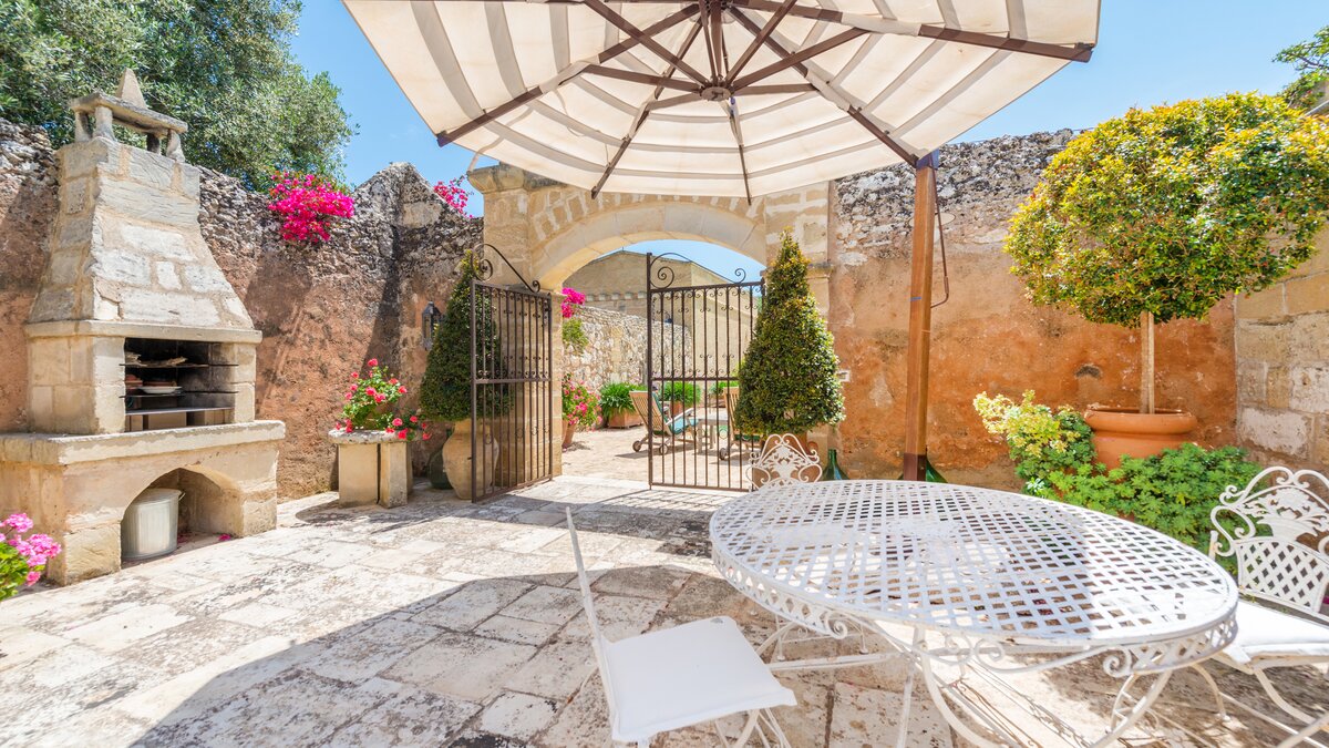 Im Außenbereich befindet sich ein ummauerter Innenhof, der fast von einem solarbeheizten Swimmingpool gefüllt ist, dessen gepflasterte Terrasse mit einer Pergola und vielen Topfpflanzen ausgestattet ist. Der umzäunte Eingangshof verfügt über Eckkreuzgänge und eine stabile Steintreppe, die zum Leben im Freien auf der oberen Terrasse führt. Mit Fahrrädern in der Villa und Carpignano nur 3 km entfernt, ist Torre Pinta 7 km vom Sandstrand von Torre San Andrea und 13 km von Otranto entfernt.