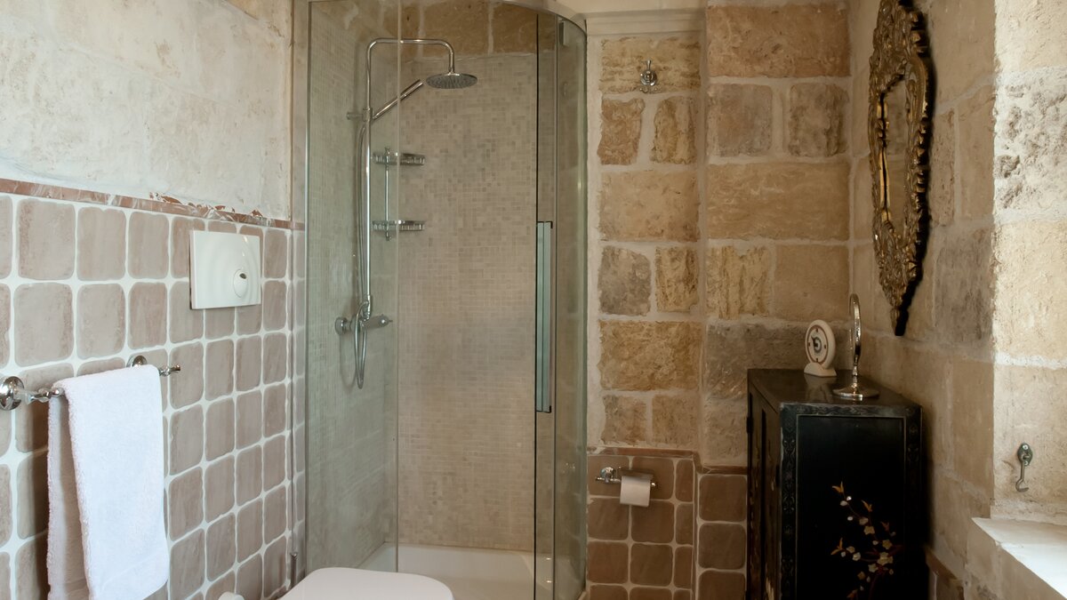 Weit entfernt von seiner abscheulichen Vergangenheit als normannische Festung, war dieses einzigartige und heute einladende Haus auch das Zuhause eines Malteserritters im 17. Jahrhundert. Im Turm selbst, dessen Wände weit über einen Meter dick sind, ist das Wohnzimmer mit Ledersesseln ausgestattet und wird freundlich von einem bronzenen schwarzen Panther bewacht. Mit Gewölbedecken, An einem Ende der gut ausgestatteten Küche hängt ein riesiger Kandelaber aus Schmiedeeisen über einem großen Eichenholz-Esstisch, während die drei Schlafzimmer, jedes mit eigenem Duschbad, mit orientalischen Teppichen und eklektischer Kunst geschmückt sind. Dessen prächtige Hauptschlafzimmer befindet sich auf der oberen Ebene des Anwesens und bietet einen herrlichen Blick über die Landschaft.