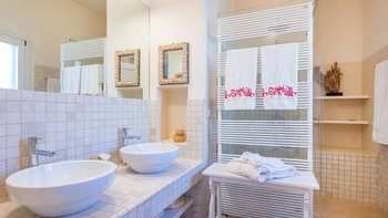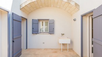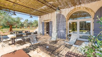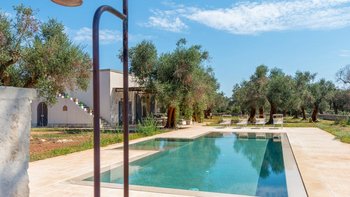 Diese wunderschöne, moderne Villa liegt inmitten von Olivenbäumen, Plumbago und anderen Sträuchern in Küstennähe, auf halbem Weg zwischen Otranto und Santa Maria di Leuca, nur 2,4 km von ausgezeichneten, preiswerten Restaurants und Geschäften im malerischen Dorf Spongano entfernt. Dessen weiße Wände sind wunderschön im modernen, eleganten italienischen Stil eingerichtet und bilden eine leere Kulisse für elegante Polstermöbel und ein paar antike Möbelstücke. Ins Innere befindet sich auf der linken Seite ein offenes Grundriss Wohnzimmer mit modernen weißen Sofas, das zum Essbereich führt, in dem alle Tisch- und Glaswaren untergebracht sind. Von hier aus öffnet sich die neue Küche mit schönen Fliesen zu einem Innenhof mit Waschbecken, Dusche und einem Hauswirtschaftsraum. Die drei Schlafzimmer sind über einen Korridor zugänglich, der rechts von der Eingangshalle zur Rückseite des Hauses führt. Ein Doppel- und ein Zweibettschlafzimmer teilen sich ein neues Duschbad mit zwei Waschbecken. Deren Hauptschlafzimmer am anderen Ende verfügt über ein besonders attraktives Himmelbett und öffnet sich zu seiner eigenen schattigen Terrasse. Deren Haus bietet ebenso viel Wert auf das Leben im Freien und verfügt über eine große schattige Terrasse zum Essen im Freien, mit eingebauten gepolsterten Sitzgelegenheiten und weiteren bequemen Sitzgelegenheiten neben dem großen neuen Swimmingpool. Deren charmante Dorf Spongano mit einem ausgezeichneten Restaurant, Trattoria Picalo, ist ca. 30 Minuten zu Fuß von der Villa durch die Landschaft für energiegeladene Spaziergänger. Dies ist eine sehr zentrale Lage für diejenigen, die wunderbare preiswerte Restaurants, eine atemberaubende Küste, Strände, Strandclubs und malerische und historische Städte wie Castro, Otranto, Gallipoli in dieser ruhigen und unberührten Ecke Süditaliens genießen möchten.