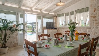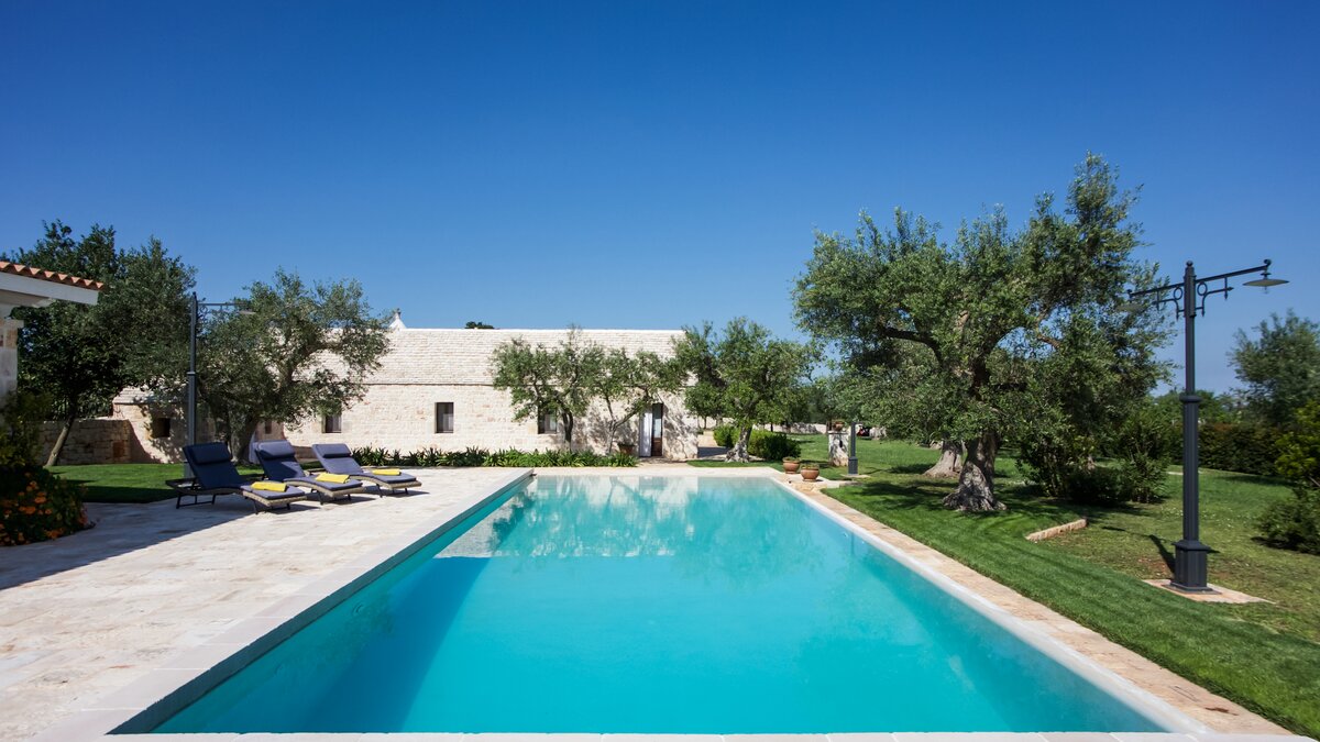 In einem Trulli-Gebäude mit mehreren Kegeln, das mit Qualität und Stil restauriert wurde, ist diese geräumige Villa in Apulien ein schicker Rückzugsort inmitten der zeitlosen Landschaft mit einem ausgezeichneten Poolbereich zum gemütlichen Leerlaufen.