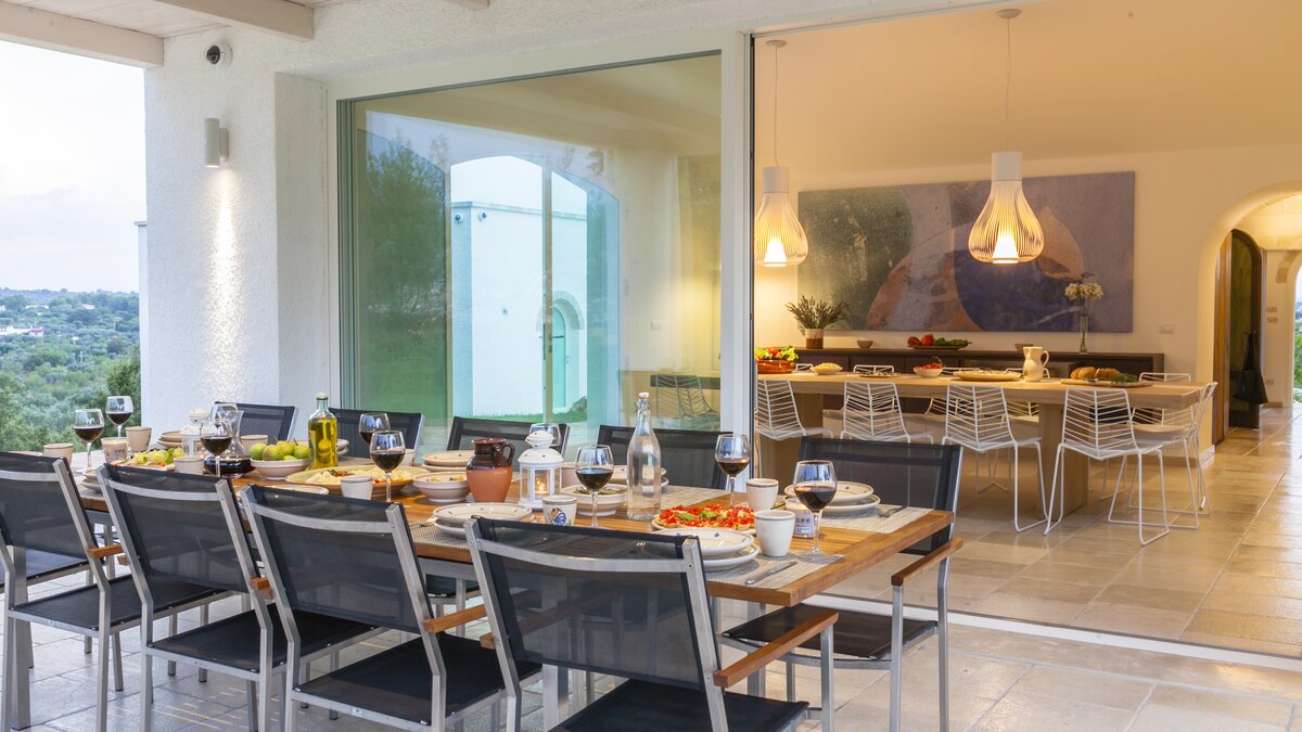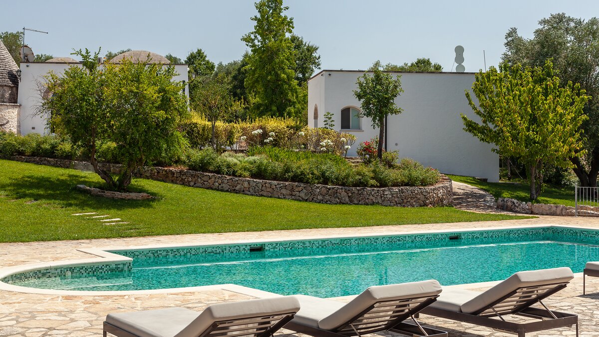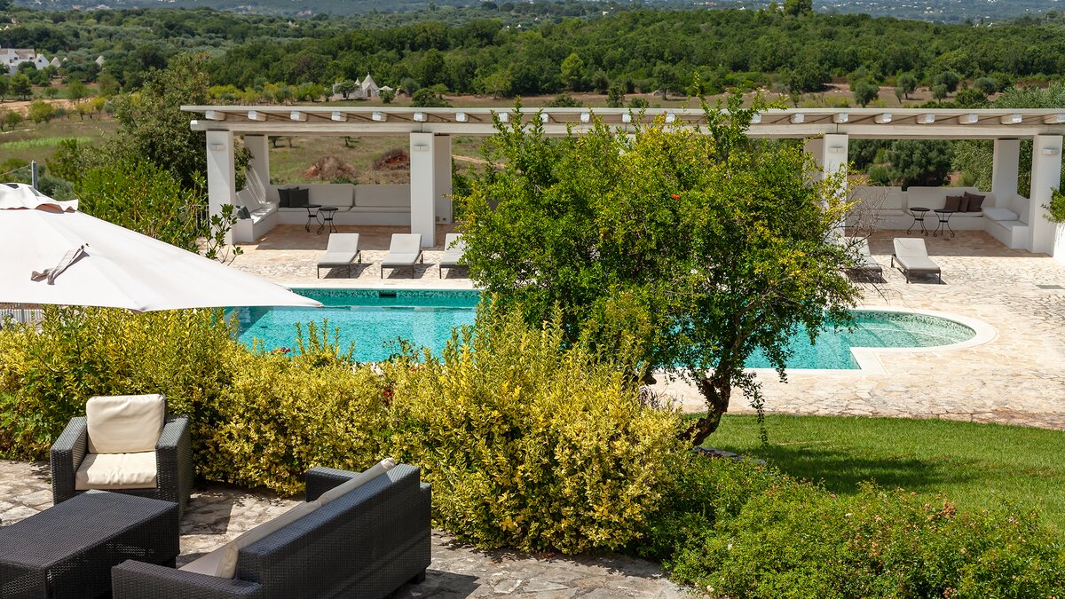 Mit Blick auf die Felder und Kirschgärten eines privaten Anwesens in den Hügeln des Valle d’Itria ist diese Familienvilla in Apulien ein komfortabler, charaktervoller, ländlicher Rückzugsort mit hohen Standards und einem riesigen Pool.