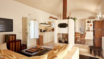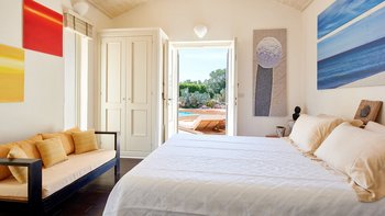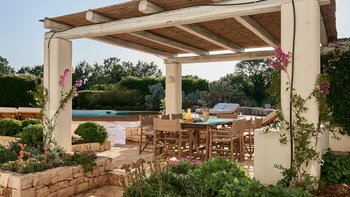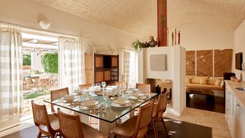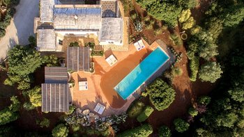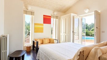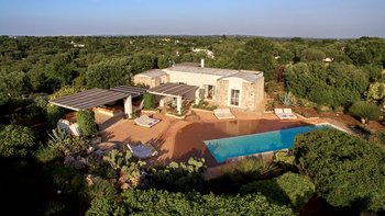 Umgeben von Wiesen und Olivenhainen, die alle den Privater Pool umgeben, verbindet diese Villa traditionelle apulische Steinarchitektur mit internationaler und moderner Inneneinrichtung. Im Außenbereich befindet sich der See-ähnliche Pool mit einem luxuriösen Loungebereich, Liegestühlen und Hängematten zum Entspannen und einem angrenzenden Essbereich im Freien, überdacht von einer Holzveranda mit eingebautem Grill. Deren moderne und einzigartige Inneneinrichtung der Villa Benedetta kontrastiert perfekt mit der Ruhe der ländlichen Umgebung. Deren offene Küche, der Ess- und Wohnbereich befinden sich unter einem traditionellen, für die Region typischen Tonnengewölbe und haben direkten Zugang zu den Außenbereichen. Alle drei Schlafzimmer verfügen über eine interessante Mischung aus traditionellem und modernem Stil mit indischen Stoffen und italienischen Kunstwerken. Denen beiden Schlafzimmer haben Zugang zum Poolbereich, eines davon mit eigenem Duschbad und das andere teilt sich ein Bad mit einem klassischen römischen Steinbadezimmer mit dem Zweibett-Schlafzimmer. Dieses Anwesen ist sehr privat, aber dennoch leicht erreichbar, nur 7 km von Supermärkten, Geschäften und ausgezeichneten Restaurants in Cisternino und Ostuni entfernt.
