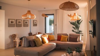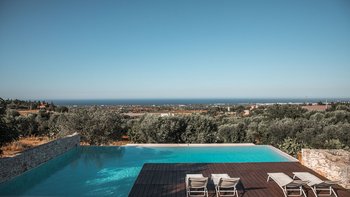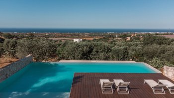 Im Freien können Sie Ihren Abendessen im Freien auf einer weitläufigen Veranda mit Blick auf das Meer genießen. Entspannen Sie die Sonnenstrahlen auf der hölzernen Sonnenterrasse am großen Pool oder genießen Sie den Sonnenuntergang von der Außenlounge aus. Eine große Rasenfläche und zwei Hektar Land umgeben das Anwesen mit verschiedenen Obstbäumen.