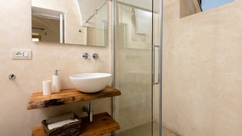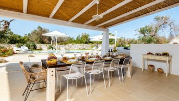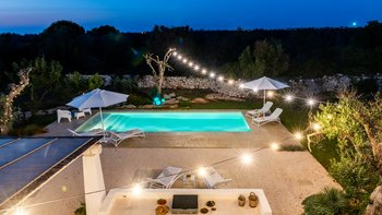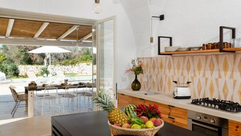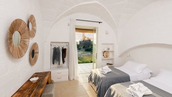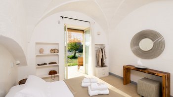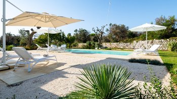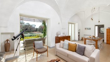 Der Infinity-Pool befindet sich in einem sonnigen Garten, in dem eine traditionelle Steinpyjara eine unverwechselbare lokale Note verleiht. Denen Gäste können nach Torre Vado spazieren, die umliegenden Hügel mit Pajare und kleinen Dörfern erkunden oder einfach die weitreichende Aussicht genießen. Lokale Restaurants gibt es reichlich und ein gutes Preis-Leistungs-Verhältnis, Geschäfte finden Sie sowohl in Morciano und auch in Torre Vado. Eine Reihe von Küstendörfern, lebhafte Strandclubs, in denen man bei Sonnenuntergang einen Drink trinken kann, und geschützte Buchten sind leicht zu erreichen, und Bootsausflüge fahren vom Hafen von Torre Vado aus. Tagesausflüge nach Gallipoli, Otranto und Lecce sind ebenfalls lohnenswert. Dies ist eine anmutige, einladende Unterkunft in einer unberührten und authentischen Umgebung.