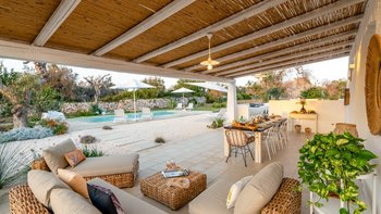 Inmitten alter Olivenhaine gelegen, ist diese schöne moderne Villa sehr komfortabel und in der Nähe preiswerter Restaurants in lokalen Dörfern und der herrlichen Küste mit Strandclubs.